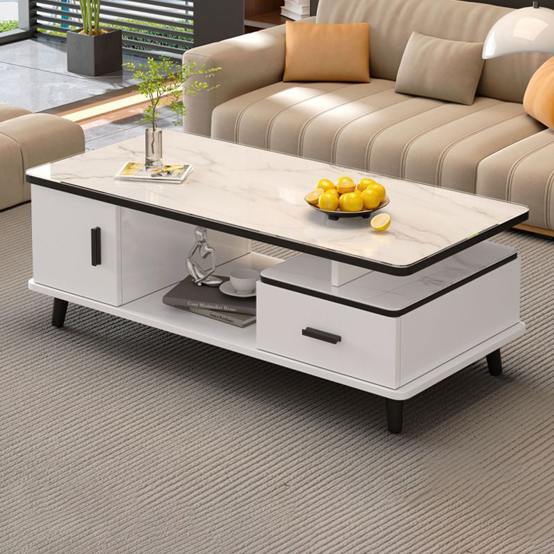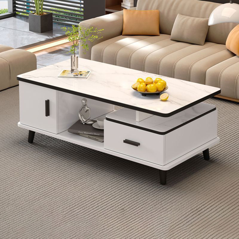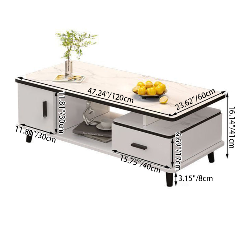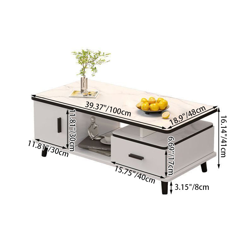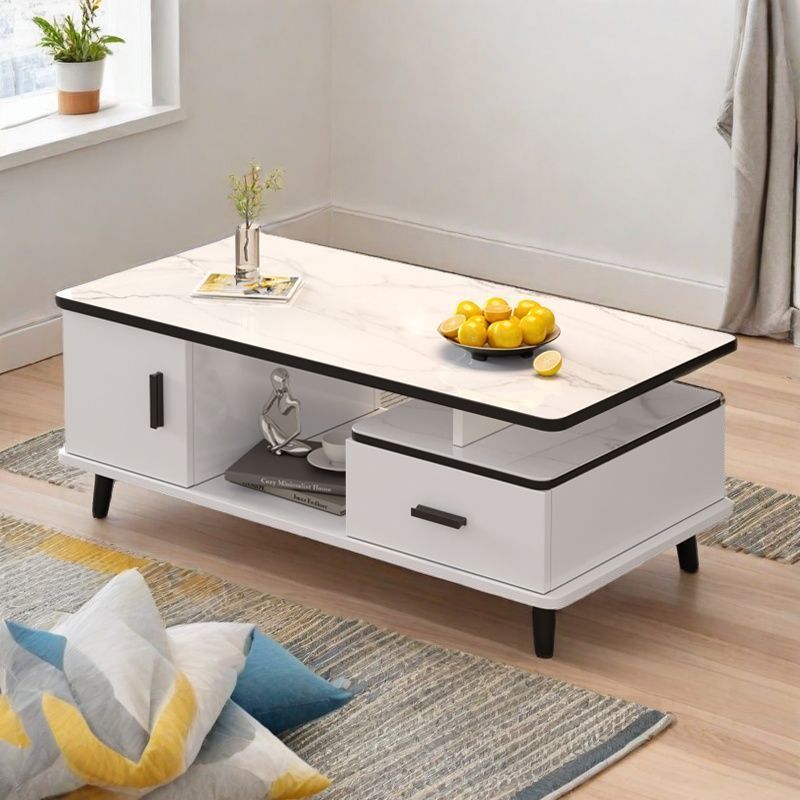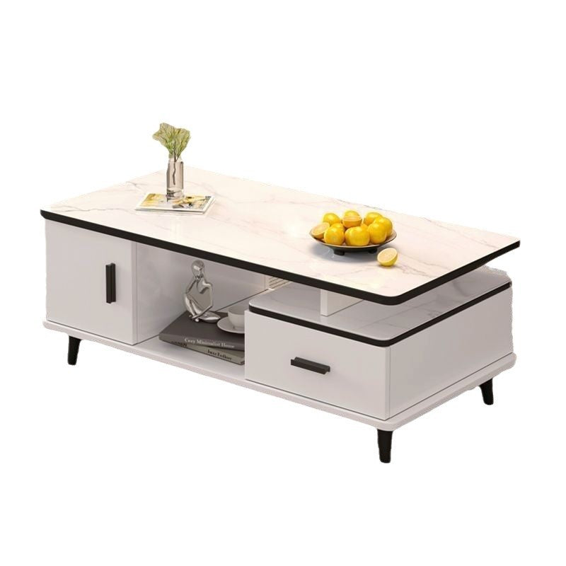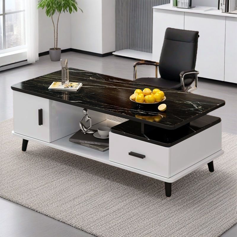 Contemporary Scandinavian Rectangle MDF Glass Low Coffee Table 1-Drawer For Living Room