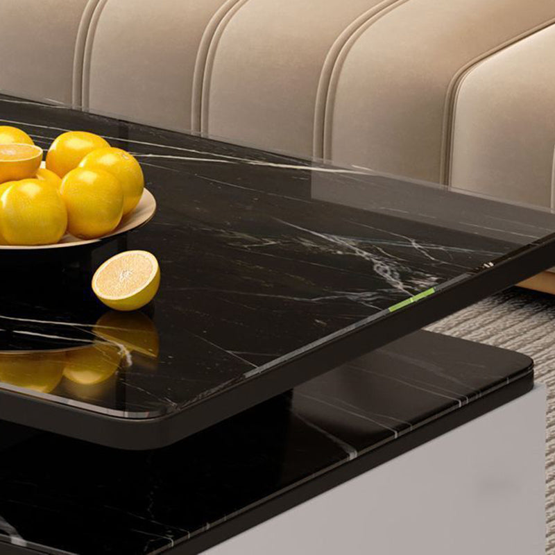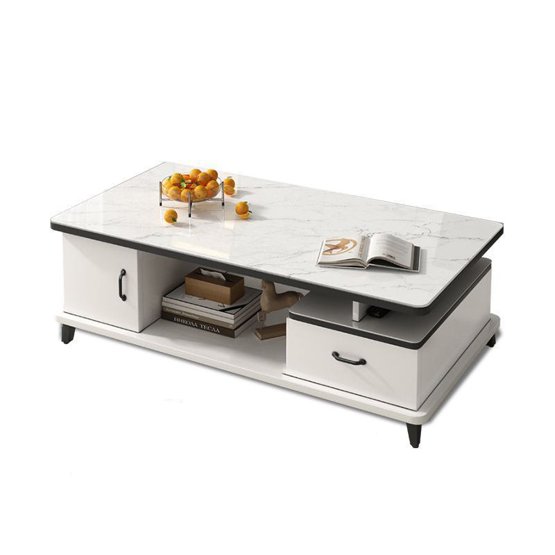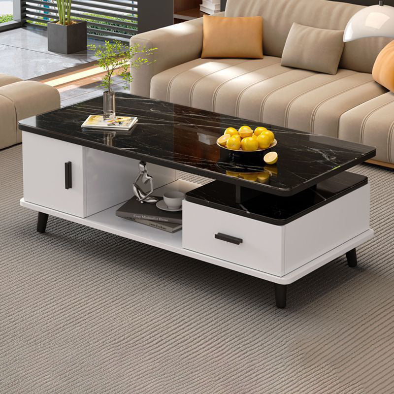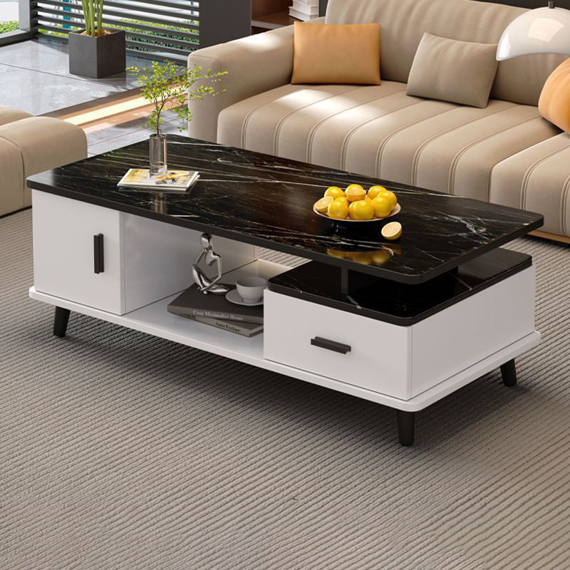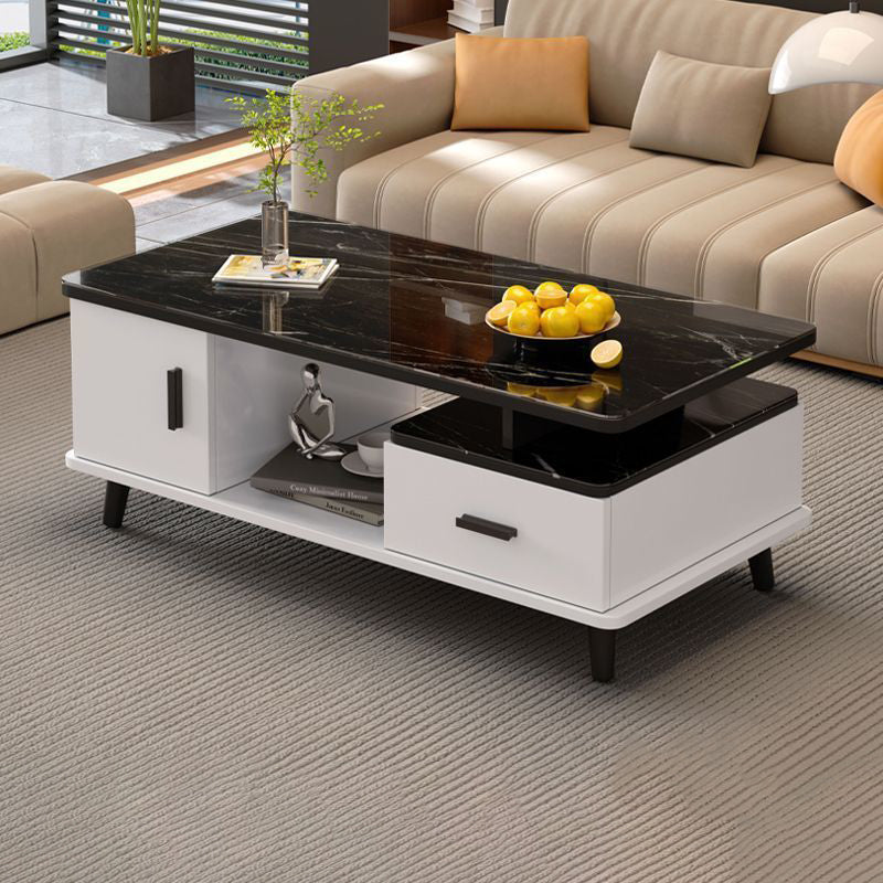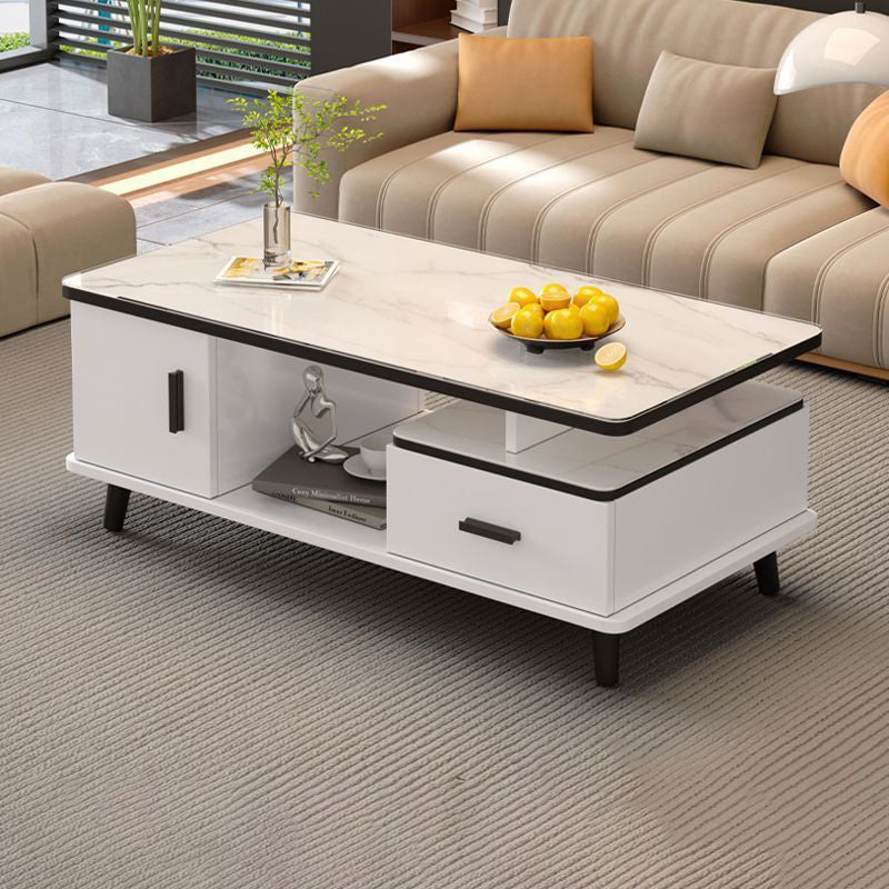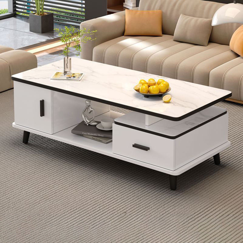 Contemporary Scandinavian Rectangle MDF Glass Low Coffee Table 1-Drawer For Living Room