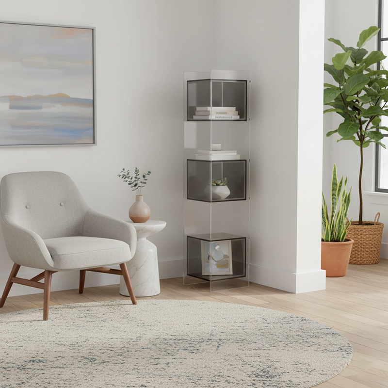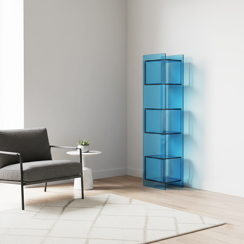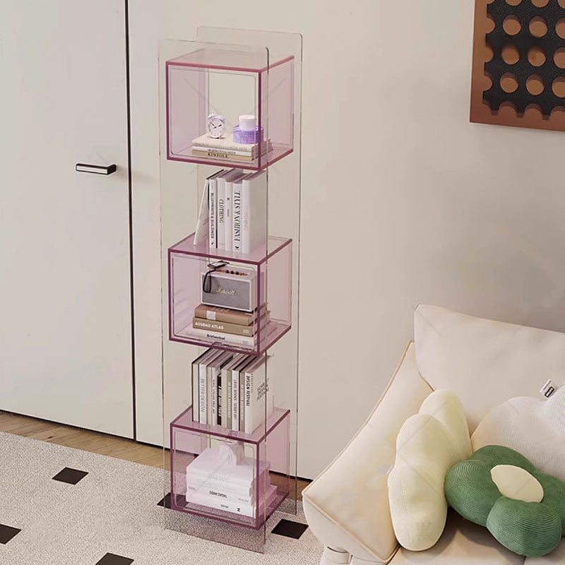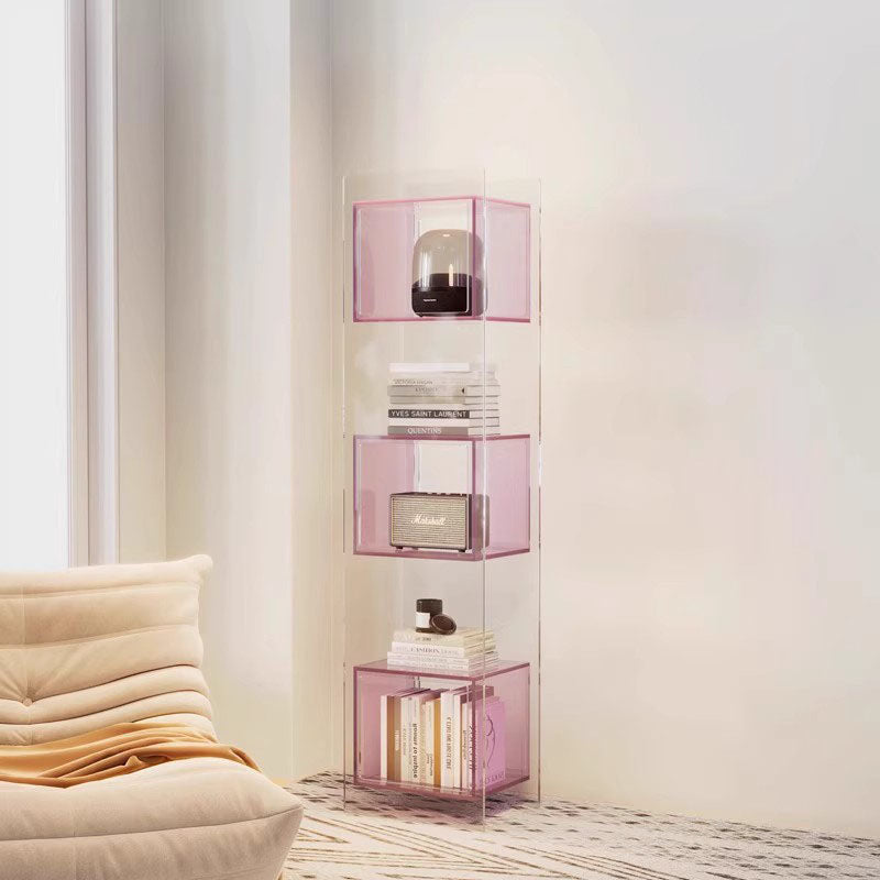 Designed with a clear acrylic structure and a strong sense of space, this 5-tier modern minimalist storage shelf offers stylish organization for books and decor. Available in pink, green, blue, smoke gray, orange, and transparent color combinations, it’s ideal for small living rooms, offices, or corner spaces, blending function with a light, contemporary look.