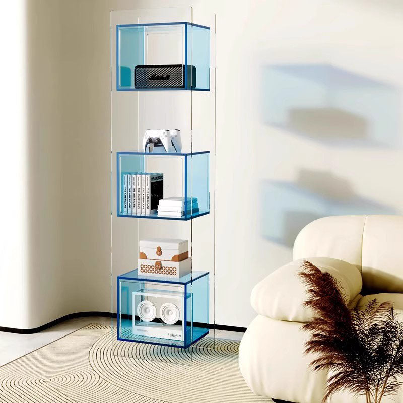 Modern Minimalist Acrylic Rectangular Storage Shelf - 5 Tiers Open Display Bookcase For Living Room & Home Office