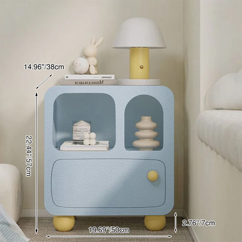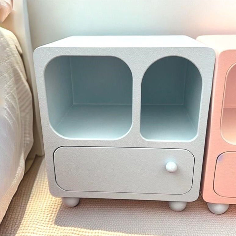 Combining sleek aesthetics with everyday utility, this modern minimalist nightstand features a clean rectangular design equipped with two cabinets and one drawer for versatile bedside storage. Available in vibrant blue and pink, this compact bedroom nightstand is specifically engineered for small spaces, providing a practical and stylish surface solution for your daily essentials.