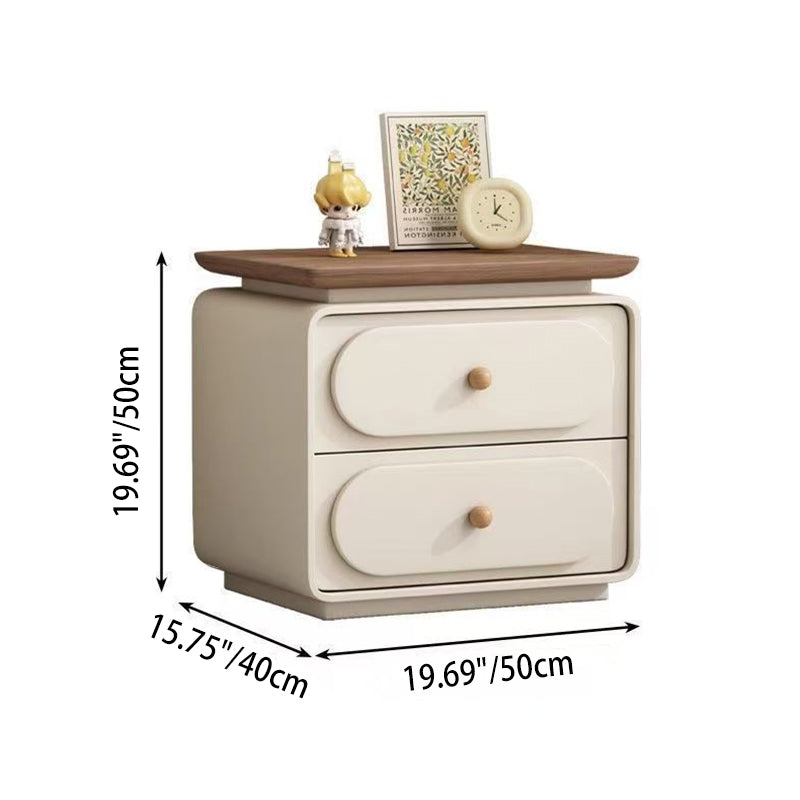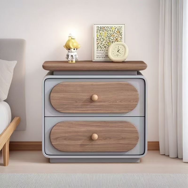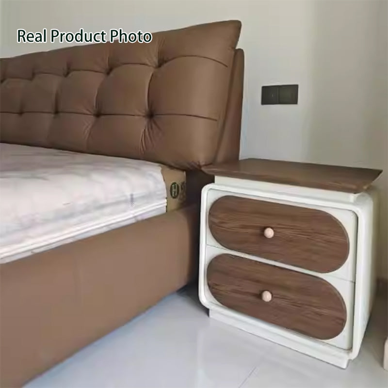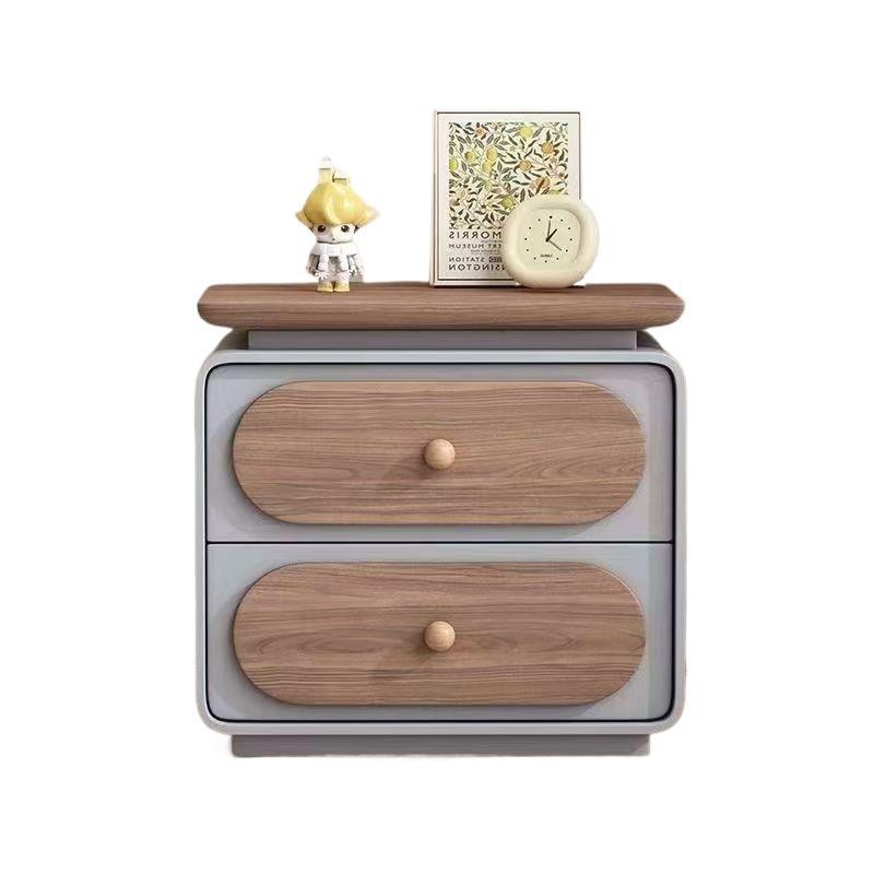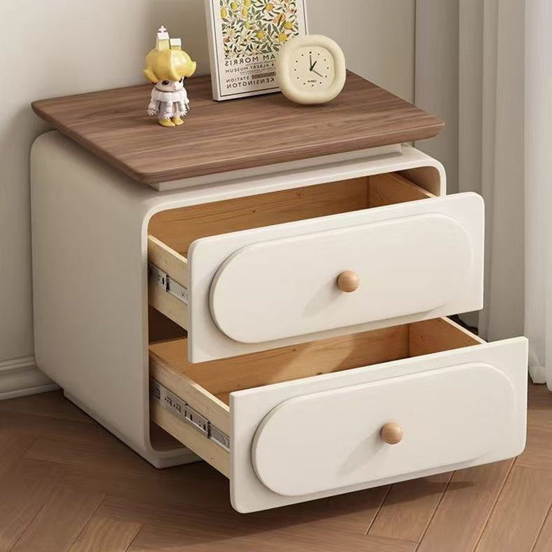 Modern Minimalist Rectangular Pine Solid Wood Cat-Scratch Leather Nightstand 2-Drawer For Bedroom