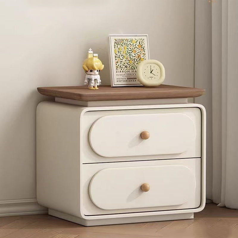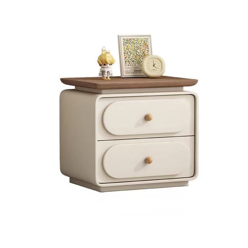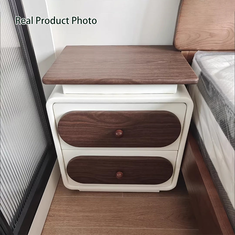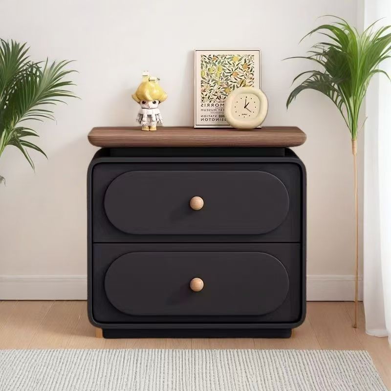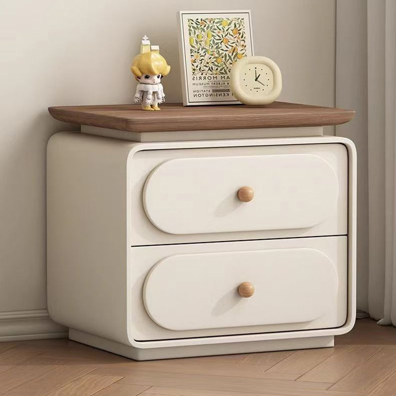 Modern Minimalist Rectangular Pine Solid Wood Cat-Scratch Leather Nightstand 2-Drawer For Bedroom
