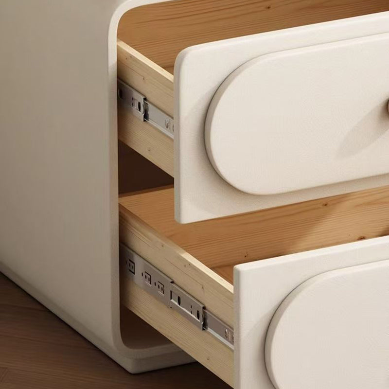 Elevate your bedroom with this modern minimalist nightstand, where clean lines meet refined textures. Crafted from solid pine and wrapped in soft faux leather upholstery, its rectangular profile offers a touch of light luxury. With two spacious drawers for organized storage and a high-capacity frame for lasting stability, this piece is as functional as it is elegant. Available in a curated palette of beige, walnut brown, khaki, light gray, and black, it features rounded safety corners to blend seamless style with peace of mind.