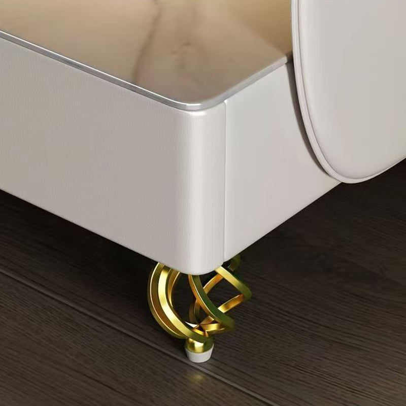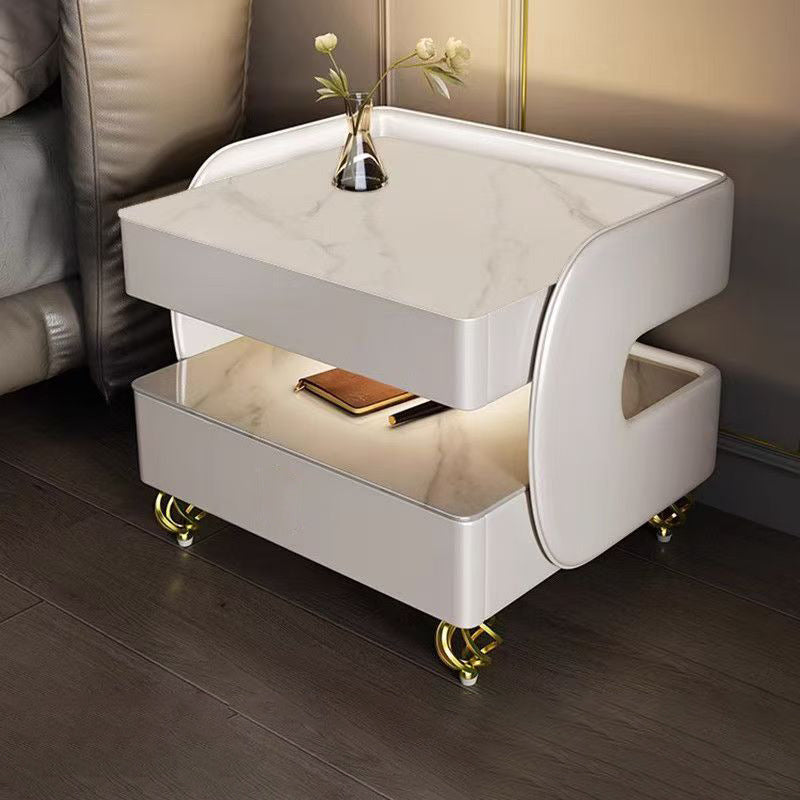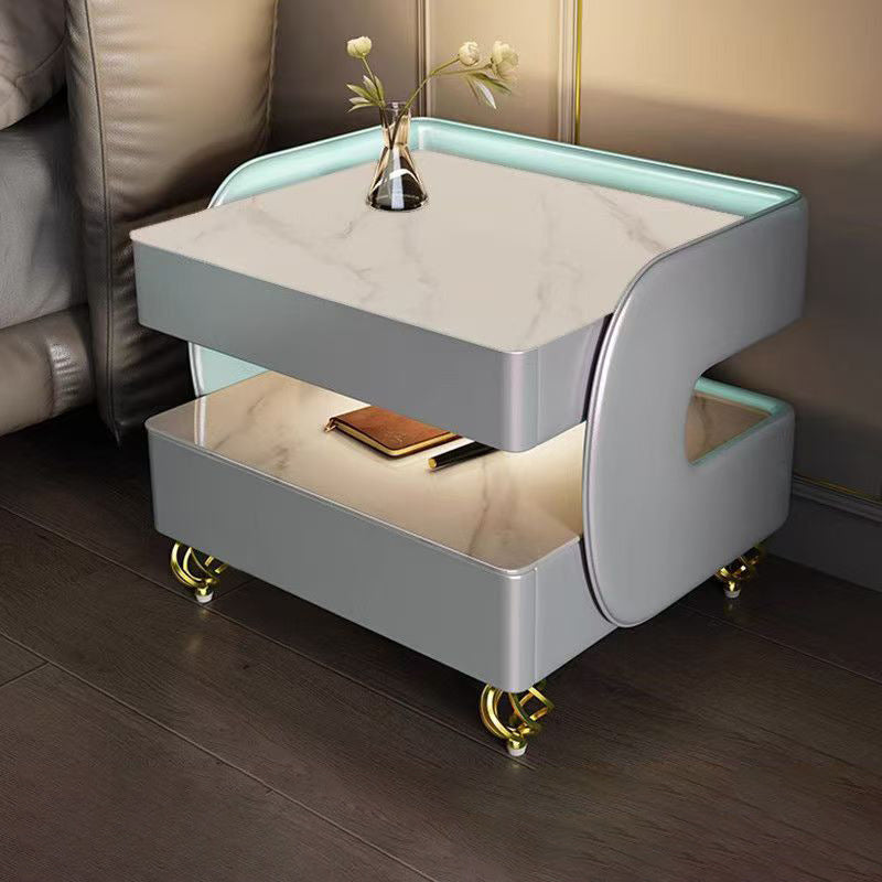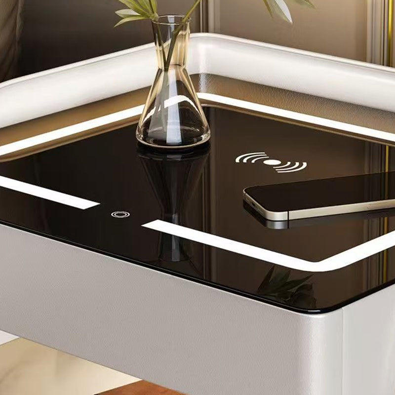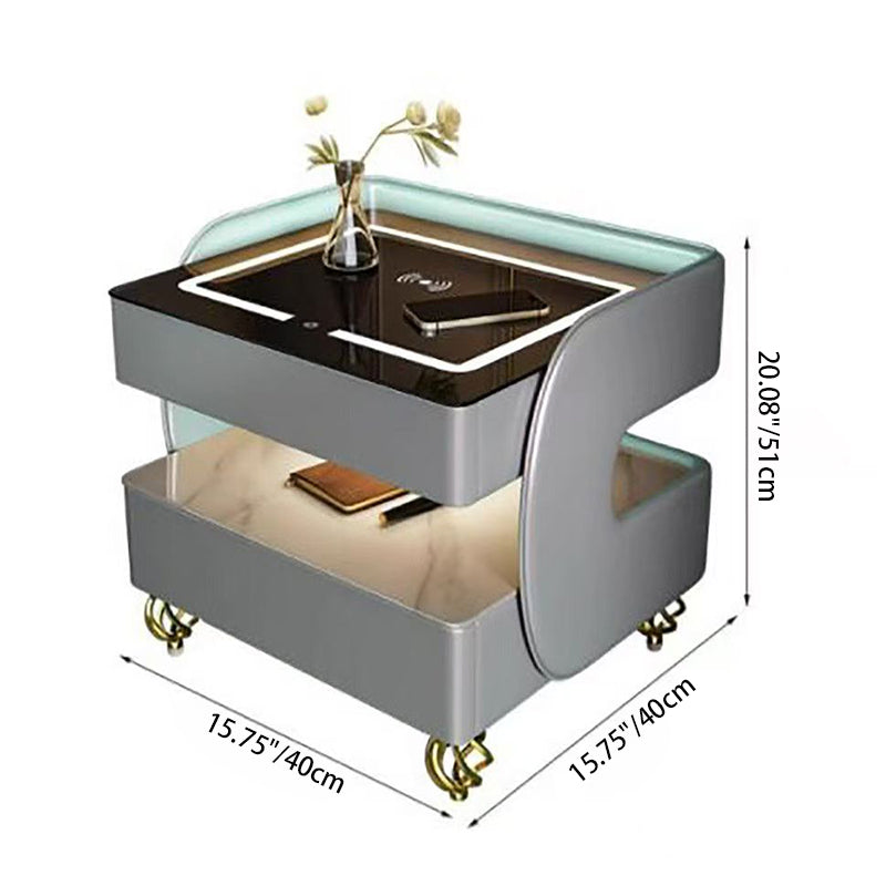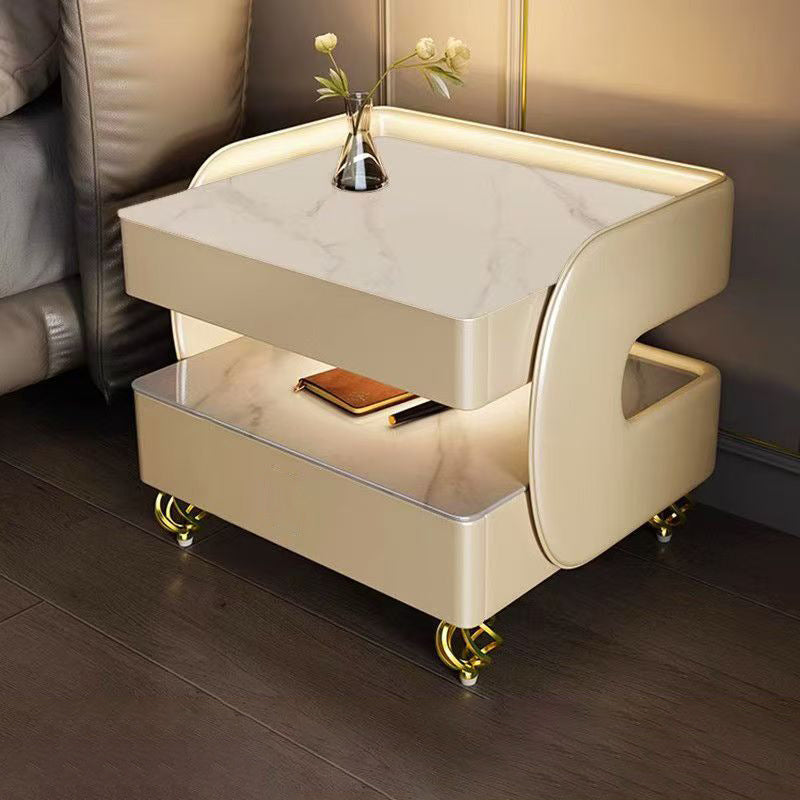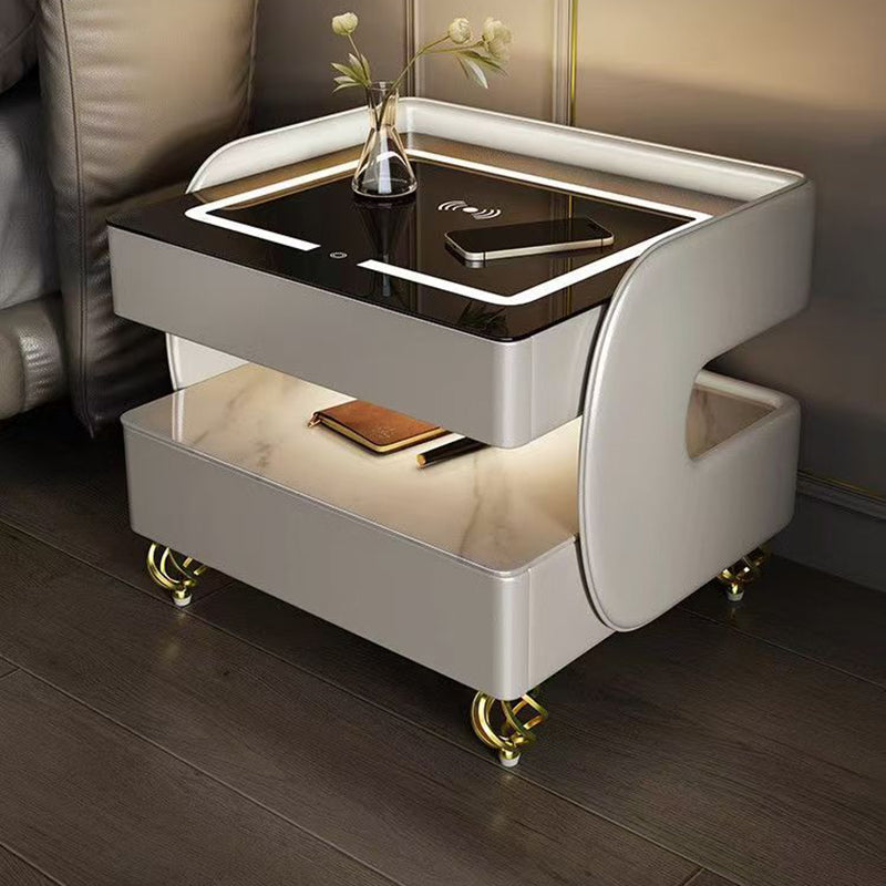 Fusing high-tech innovation with a modern minimalist aesthetic, this smart nightstand is the ultimate bedside companion. The design features a heat-resistant stone tabletop and tempered glass, supported by a solid construction that houses two drawers and dual-layer storage. Designed for the connected lifestyle, it integrates wireless charging, USB ports, and a Bluetooth speaker, all while casting a customizable glow with three-color ambient lighting. Available in beige, champagne, or light gray, it is the perfect blend of style and functionality for the contemporary bedroom.