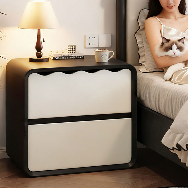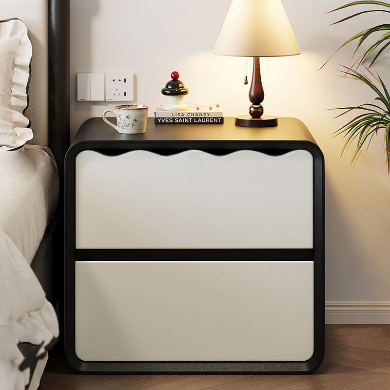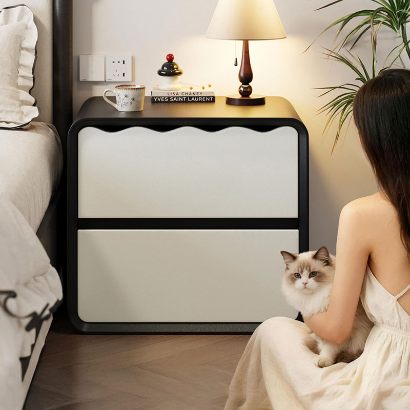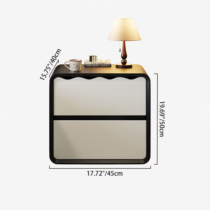 Elevate your bedroom with the refined simplicity of this modern minimalist nightstand. Expertly crafted from solid wood, this piece offers a sleek rectangular profile that seamlessly integrates into any contemporary aesthetic. With two spacious drawers designed for multi-level organization, it provides ample storage while maintaining a compact footprint. The robust construction ensures exceptional weight support, while integrated rounded corners provide a thoughtful, safety-conscious finish. Available in timeless black or crisp white to suit your decor.