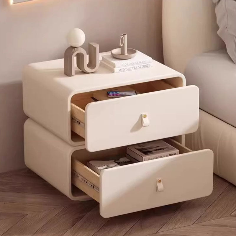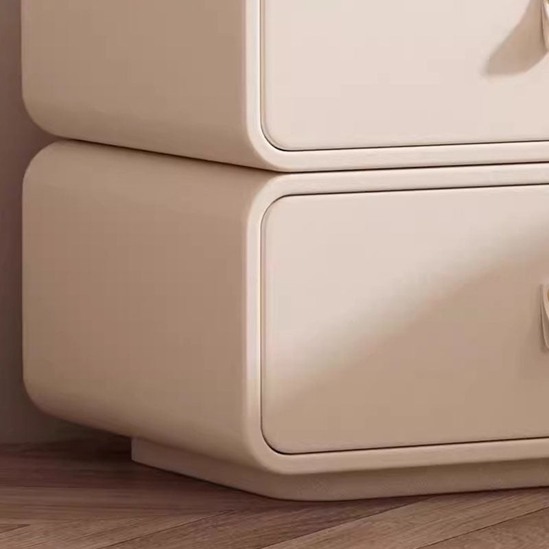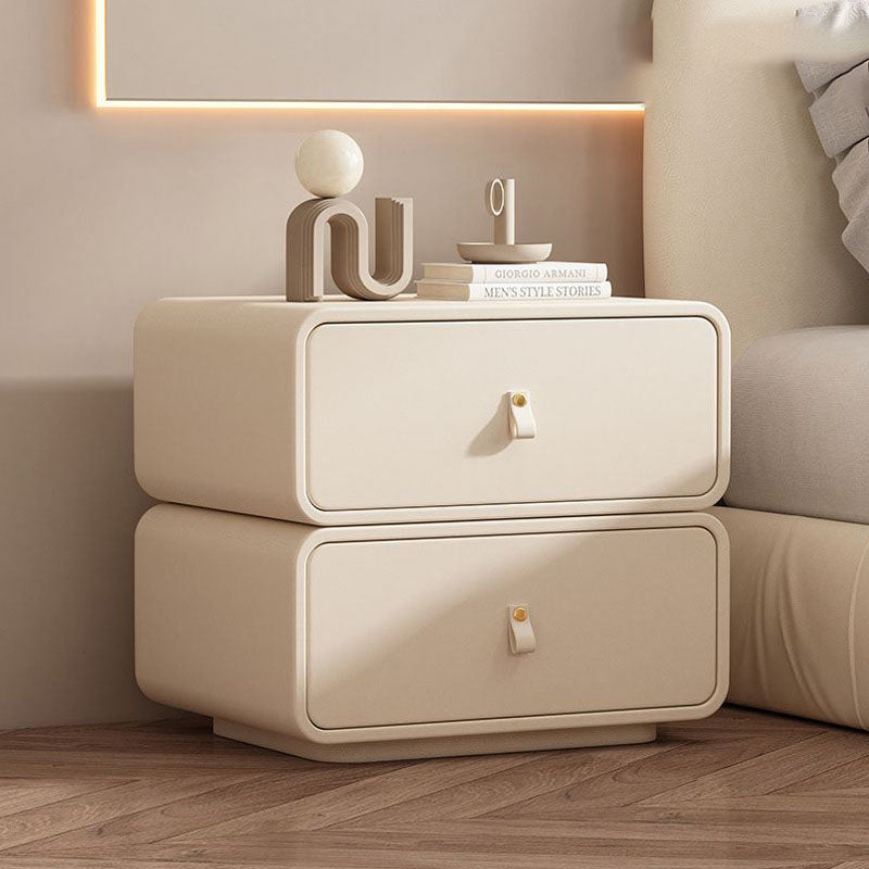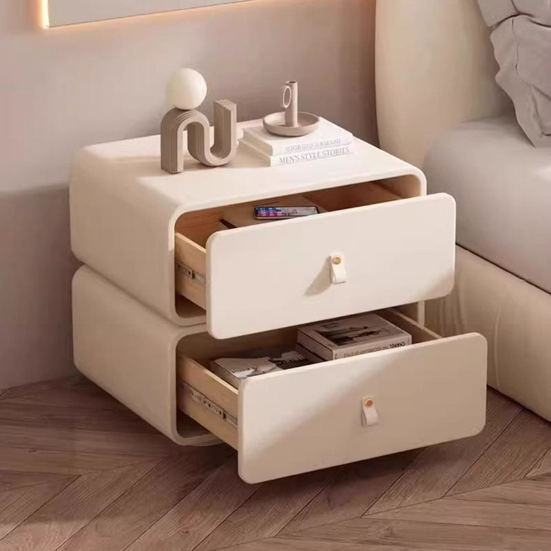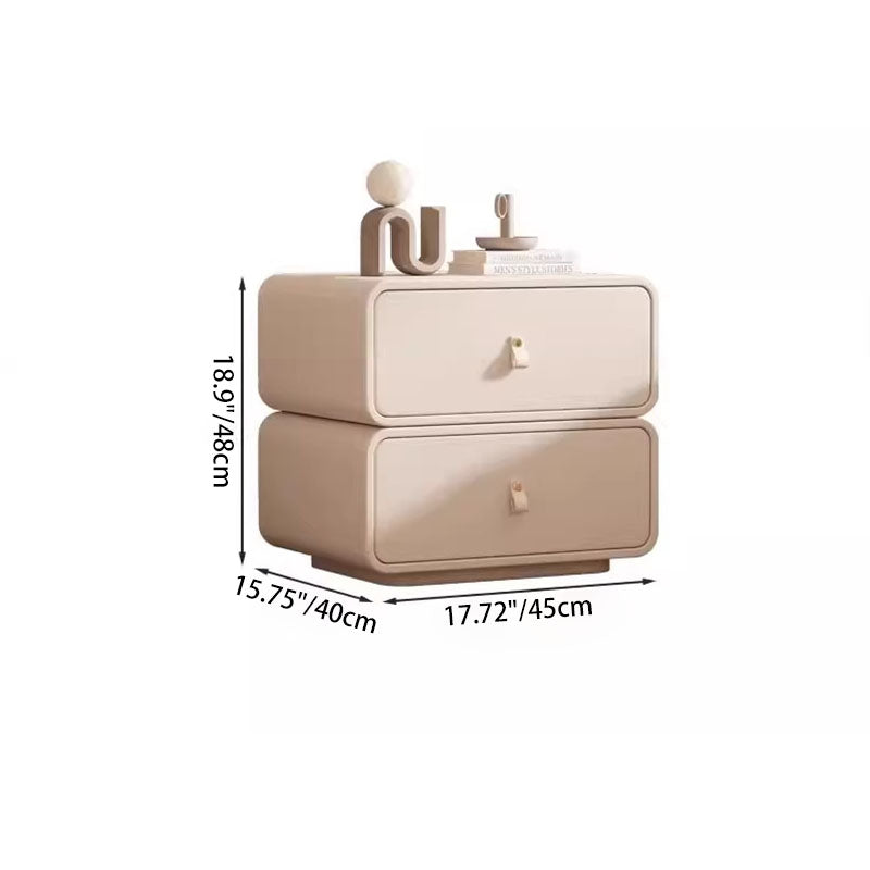 This Modern Minimalist nightstand combines a solid wood frame with cat-scratch-resistant faux leather, offering a refined and durable bedside storage solution. Designed with 2 smooth-glide drawers, silent premium drawer slides, and a one-piece floor-standing base for strong load-bearing stability, it is available in black, khaki, cream, light gray, and dark gray, making it ideal for modern bedroom organization and everyday use.