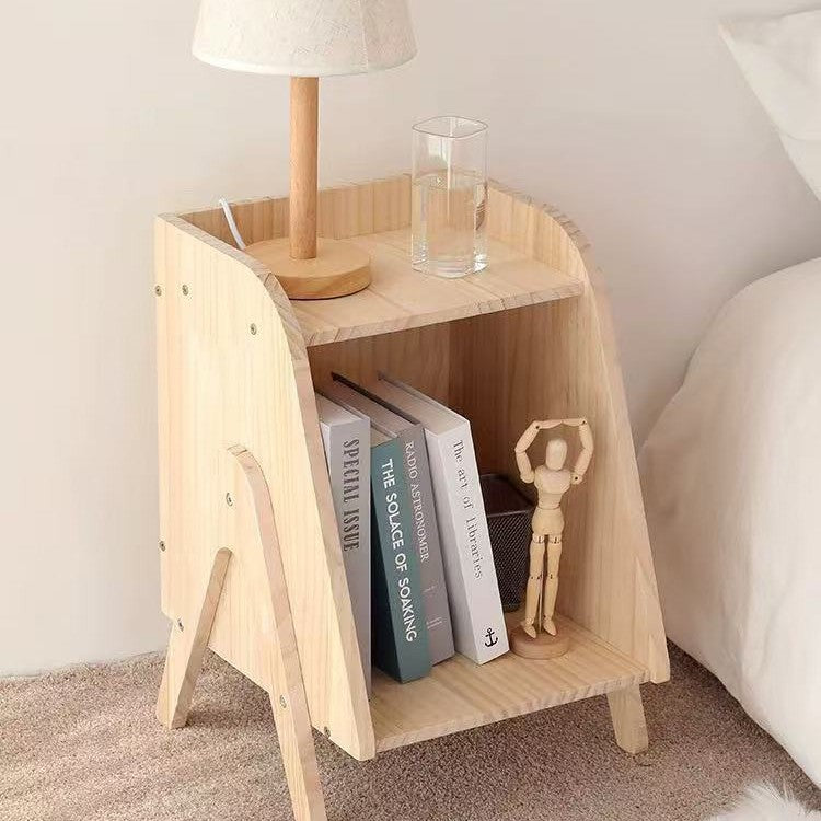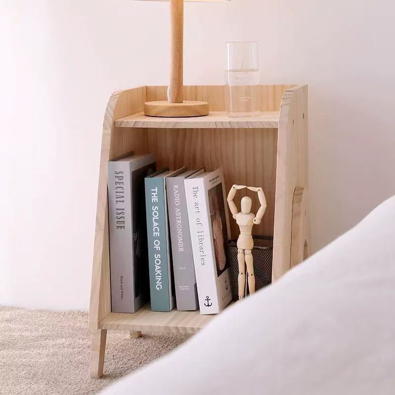 Embodying a Nordic-inspired aesthetic, this modern minimalist 2-tier nightstand is masterfully crafted from solid wood with a natural wood finish to provide stable and durable support for all your bedroom essentials. Its unique and sleek trapezoid shape allows it to function perfectly as either a bedside table or a small space accent, maximizing utility without sacrificing style. This versatile piece offers practical organization through its dual-tier design, bringing a sense of warmth and refined simplicity to any contemporary sleeping area.