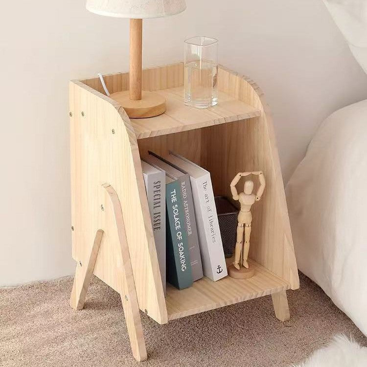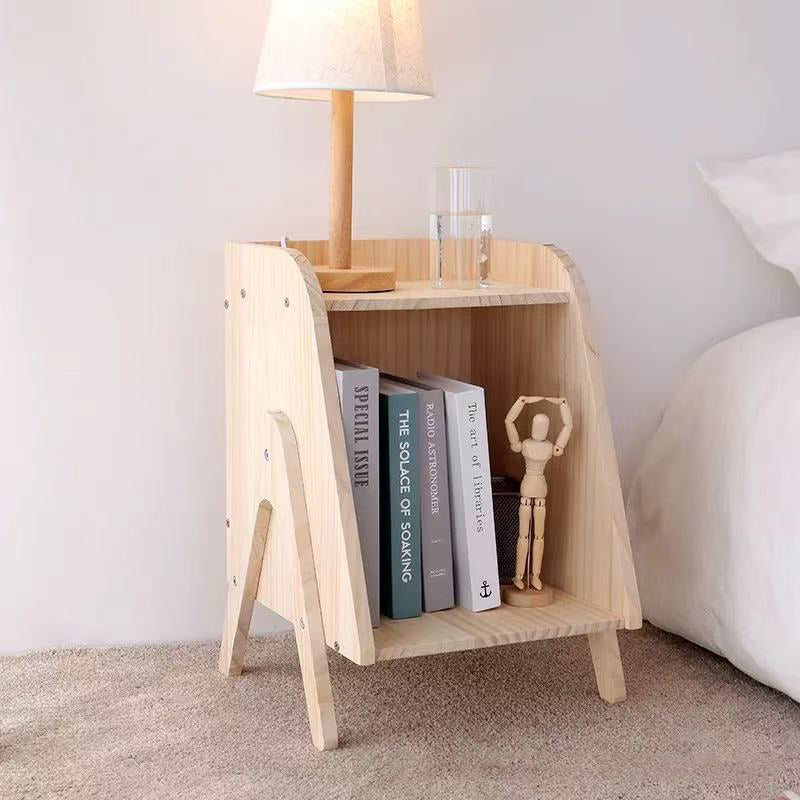 Modern Minimalist Trapezoidal Solid Wood Nightstand 2-Tier 4-Leg For Bedroom
