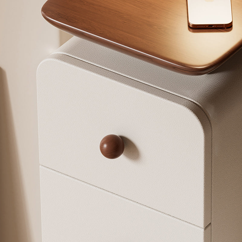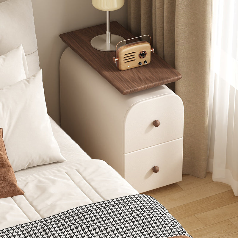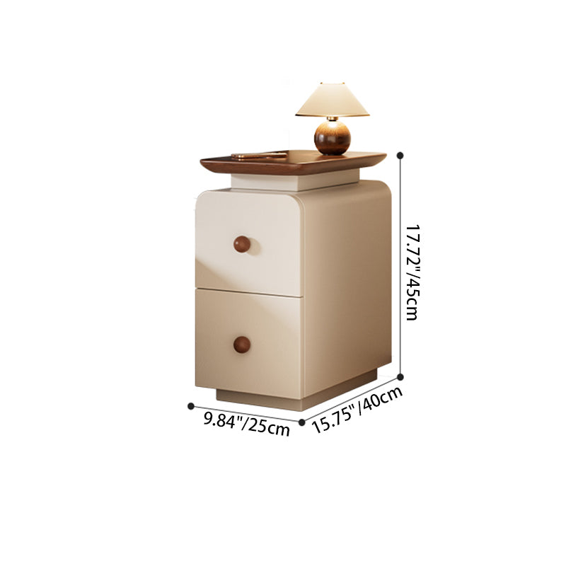 This Traditional French narrow nightstand features a rounded rectangular design crafted from solid wood multi-layer board, MDF, and scratch-resistant faux leather, offering a compact solution for tight bedroom spaces. Designed with two drawers and upgraded silent glides, plus an open tabletop, it’s available in walnut and cream finishes for smooth, noise-free storage by the bedside.