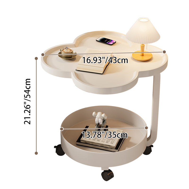 This stylish flower-shaped side table features a durable metal frame and smooth rounded edges for a modern, artistic look. Its 2-tier design offers ample storage space, while the sturdy steel base and easy mobility make it perfect for living rooms, bedrooms, or balconies. Available in white, cream coffee, and black.