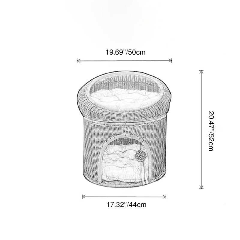 Introduce an element of modern creativity and natural comfort to your home with this stylish, handmade rattan cat bed. The unique two-tier design provides generous, distinct spaces for your cat to either rest peacefully or engage in playful exploration. For ultimate flexibility, the upper and lower levels can be easily split, allowing you to adapt the pet house to different spaces or your cat's specific needs.