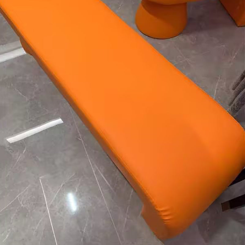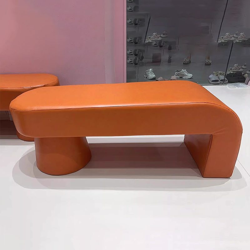 Zeitgenössische Luxusstreifen Holz PU Leder Schwamm Bank Ohne Armlehnen Rückenfrei Für Wohnzimmer