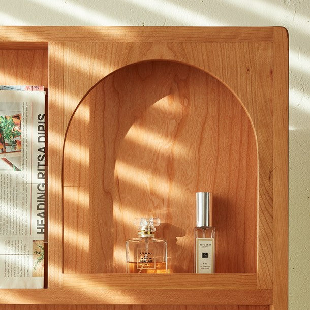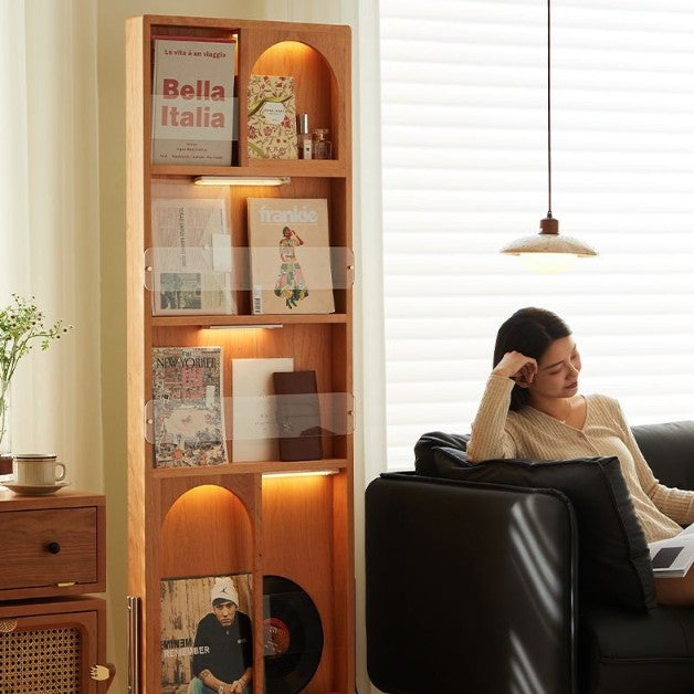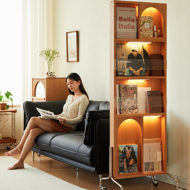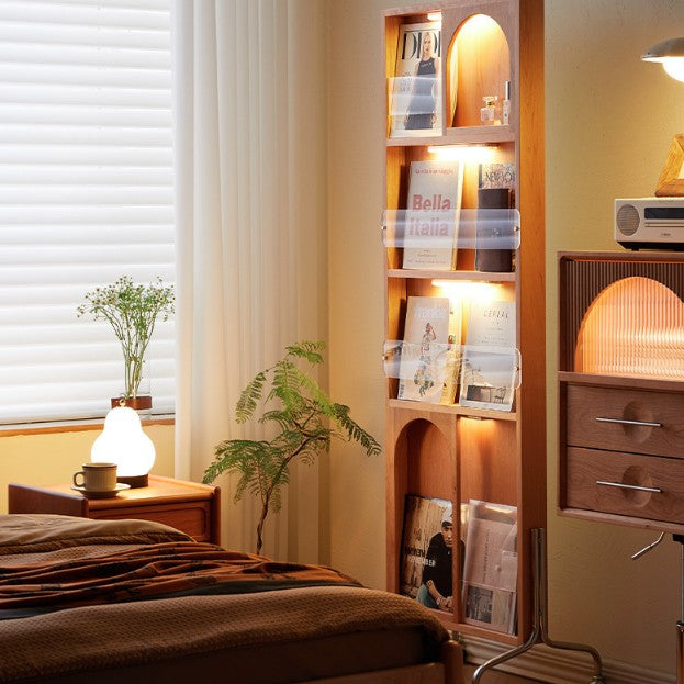 Contemporary Nordic Rectangular Cherry Wood Glass Acrylic Solid Wood Plywood Stainless Steel Full-Length Mirror Bookshelf 4-Tier For Bedroom