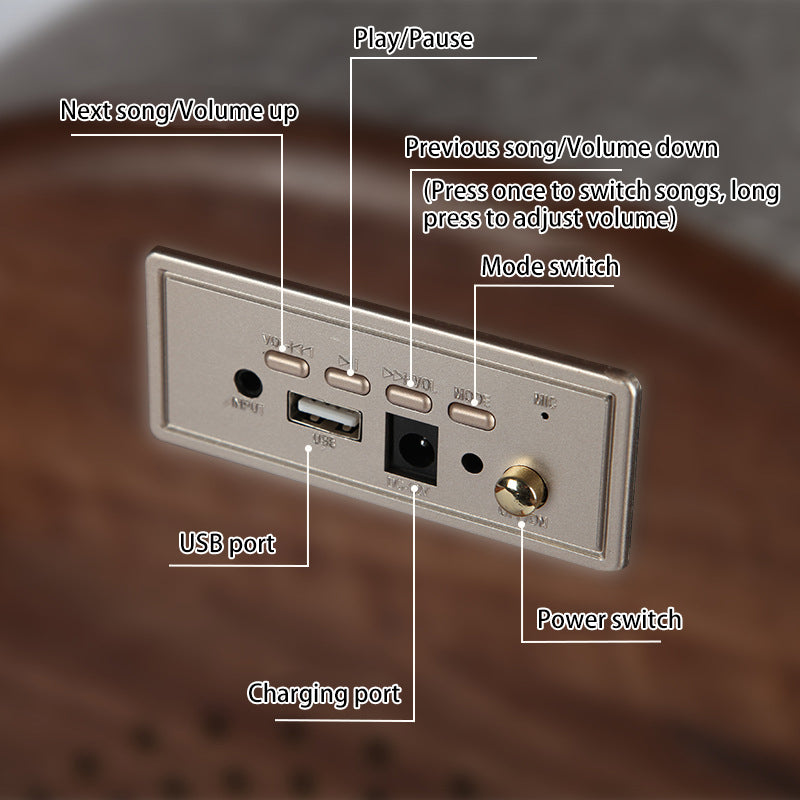 Contemporary Nordic Round MDF Solid Wood Linen Smart End Table Battery & Plug-in With Bluetooth Speaker Wireless Charging For Living Room & Bedroom