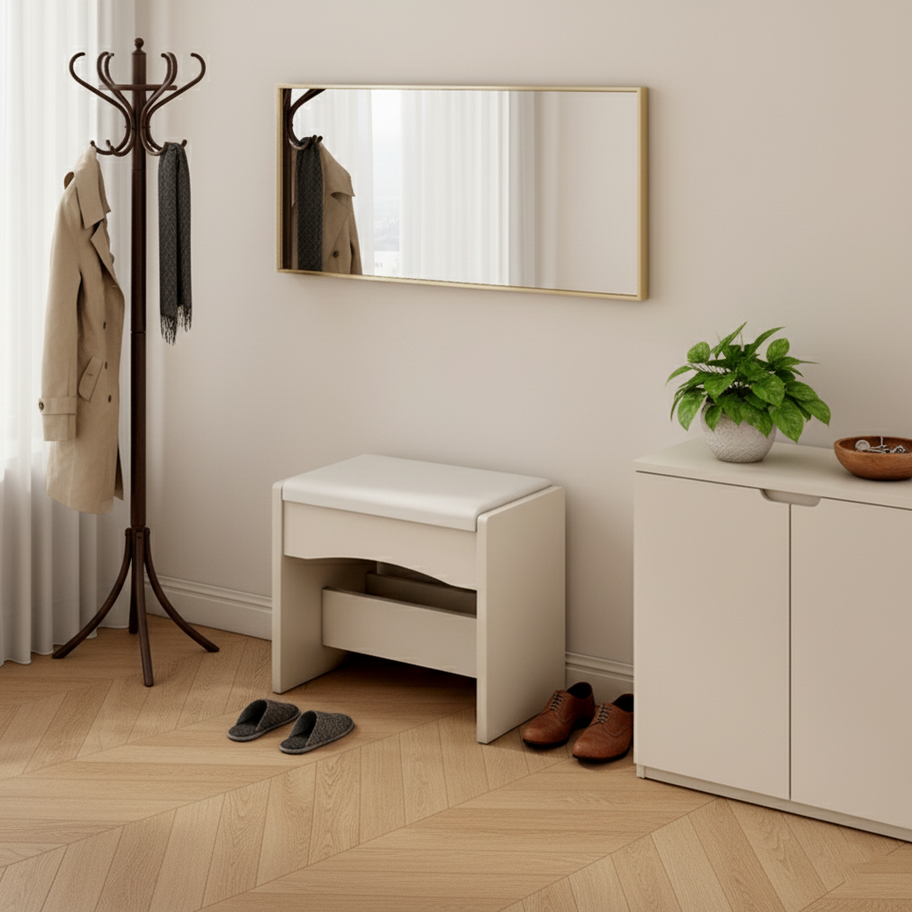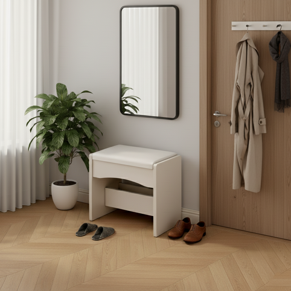 Contemporary Nordic Square Rectangular Density Board PU Leather Low Stool For Living Room