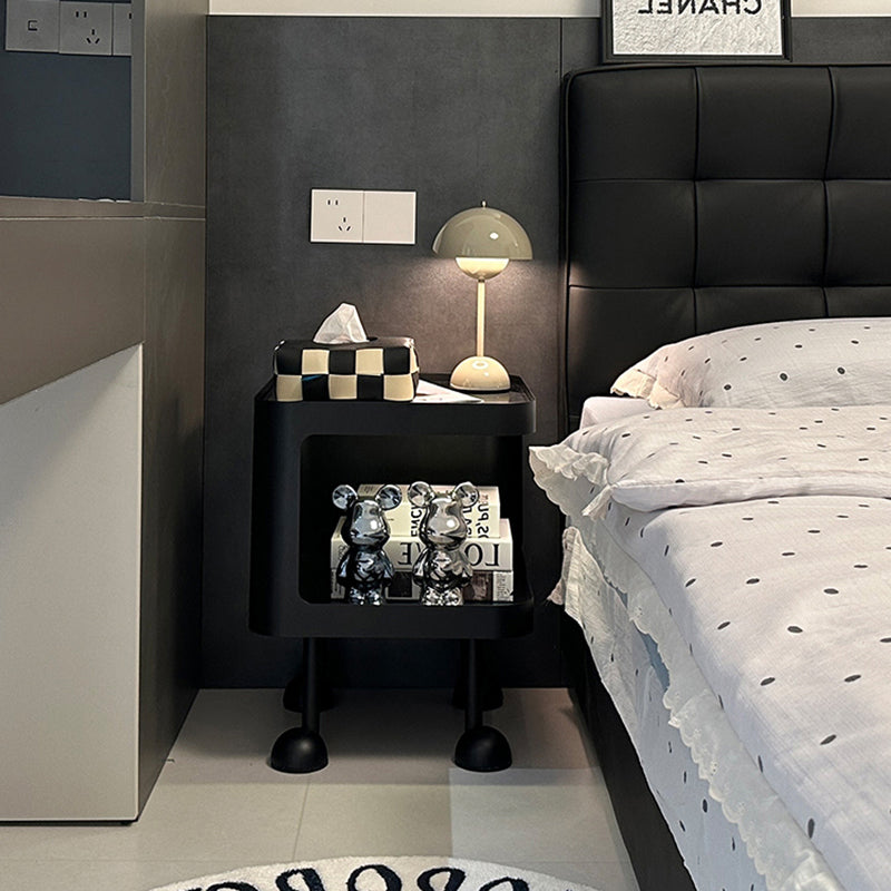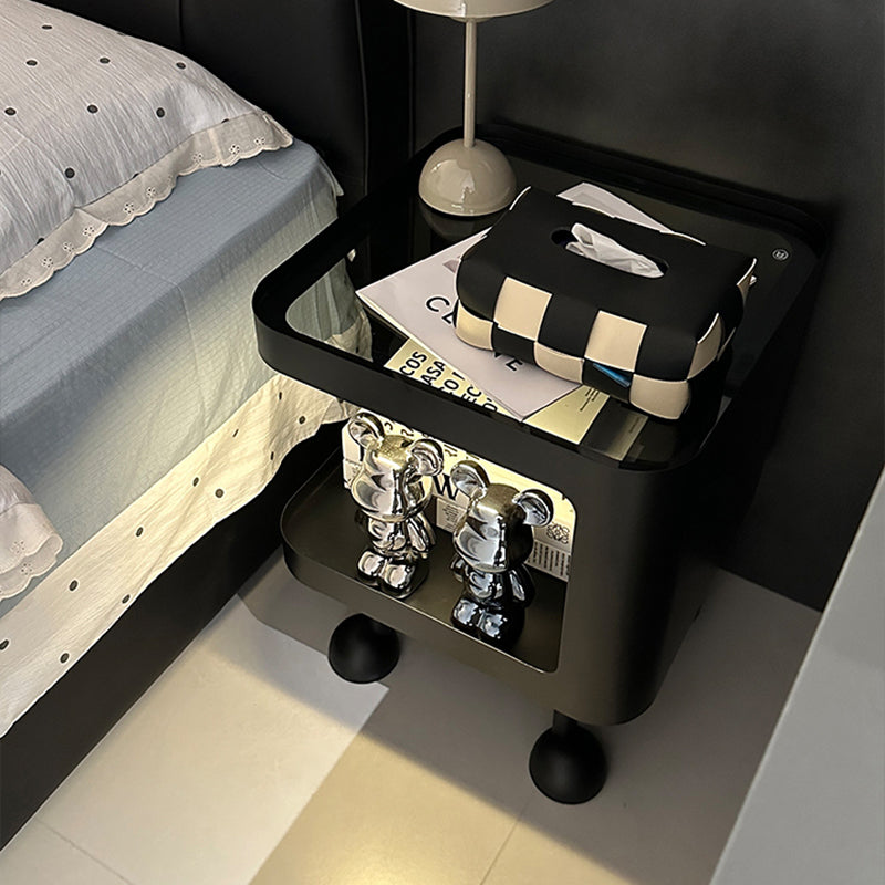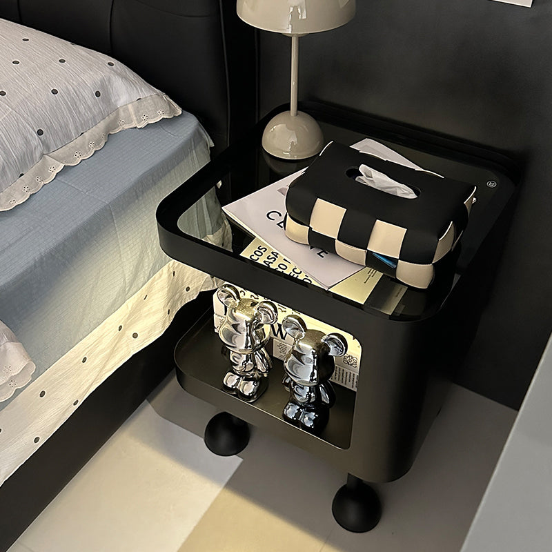 This modern Scandinavian side table combines a sleek glass top with a sturdy iron frame for lasting stability and style. The 2-tier design provides practical storage space, while the rounded square edges and raised metal base prevent slipping and add a refined touch. Available in classic white and black—perfect for living rooms or bedside use.