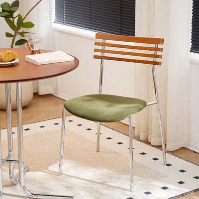 Contemporary Retro Square Multi-layer Solid Wood Panel Fabric Stainless Steel Backrest Dining Chair For Dining Room
