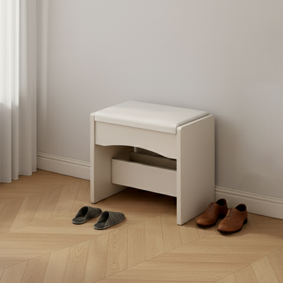 Contemporary Scandinavian Cream White "Cloud" Nightstand - 2-Drawer Storage Bedside Table For Bedroom