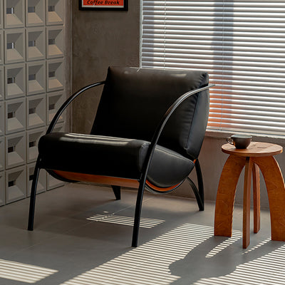 Contemporary Scandinavian Faux Leather Bedside Table - Curved Square 1-Drawer For Bedroom
