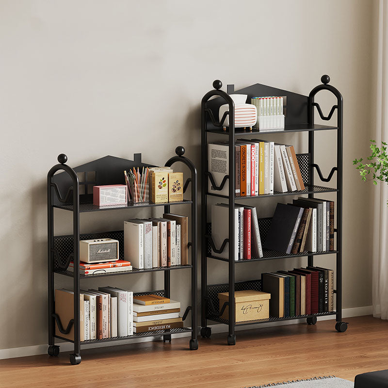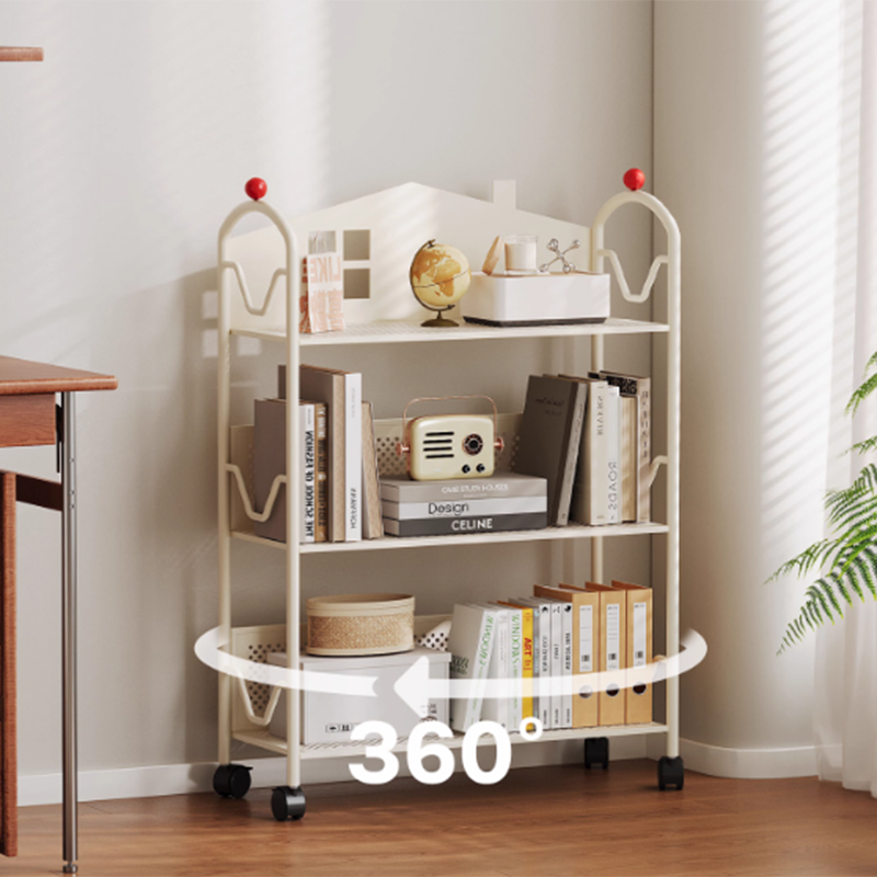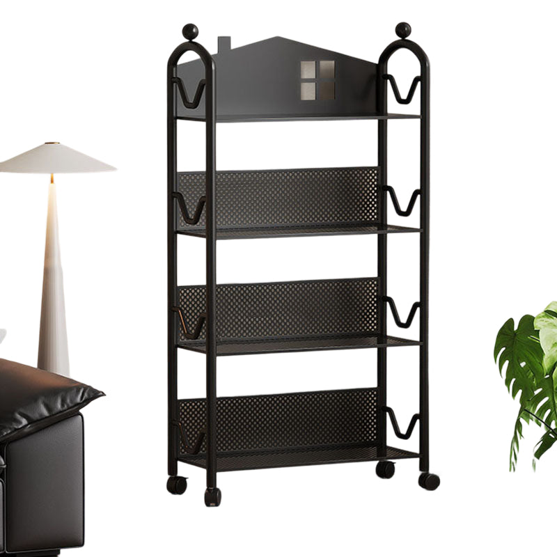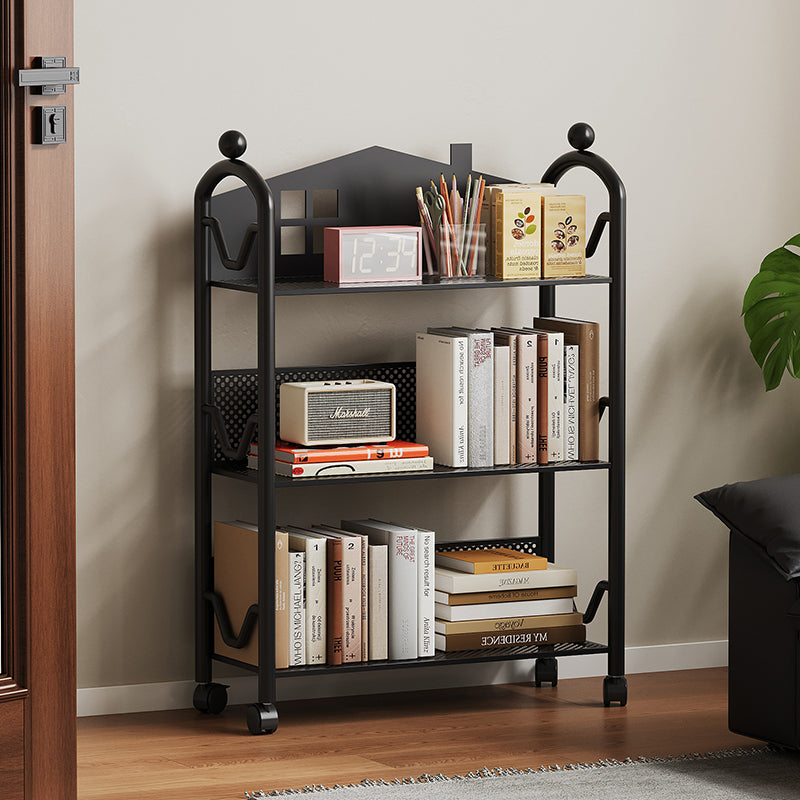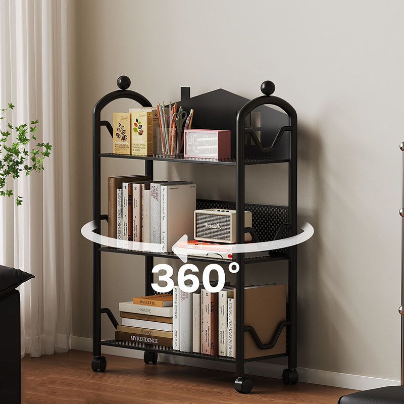 This movable 3/4-tier storage shelf features a playful castle-shaped design crafted from durable rust-resistant metal for long-lasting use. Available in black and white, it offers slim, multi-level organization for books, toys, and essentials, ideal for living rooms, bedrooms, or study spaces.