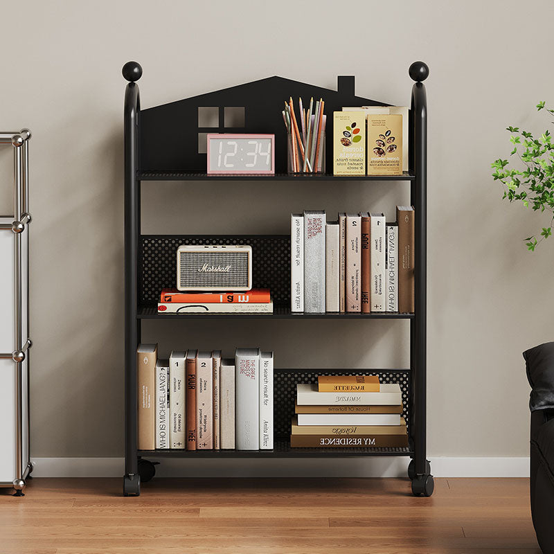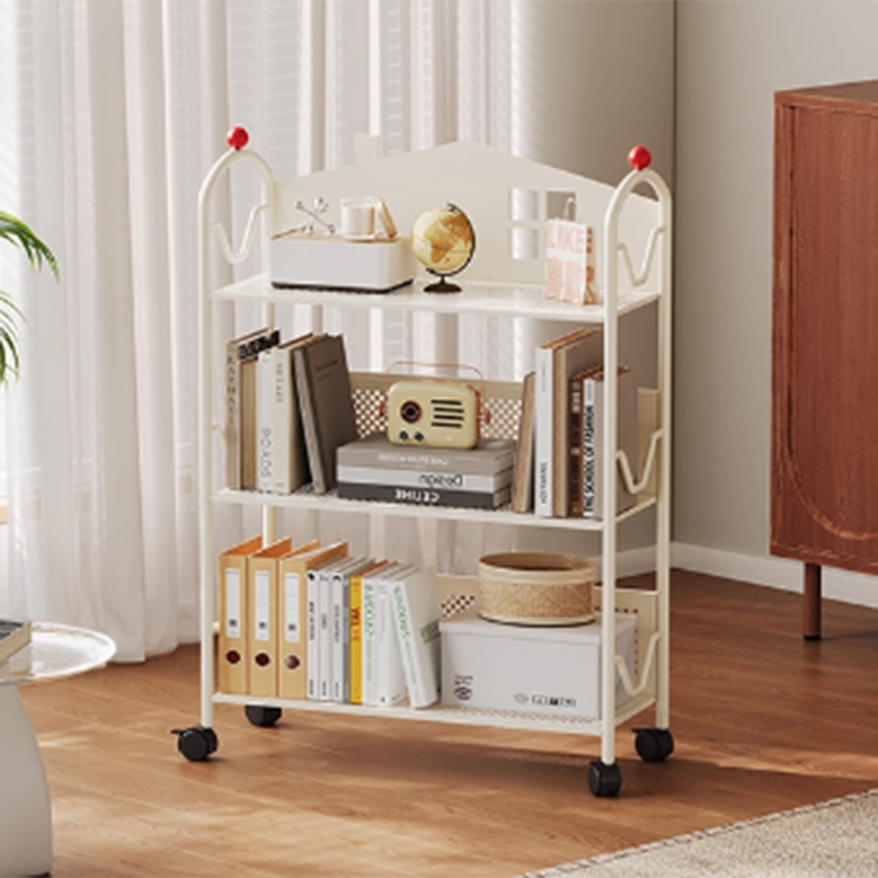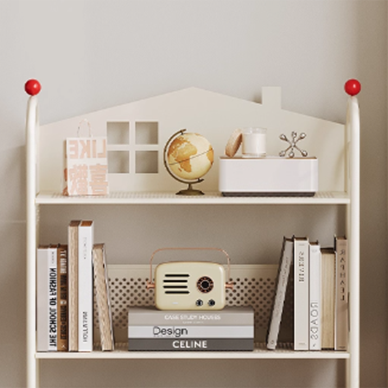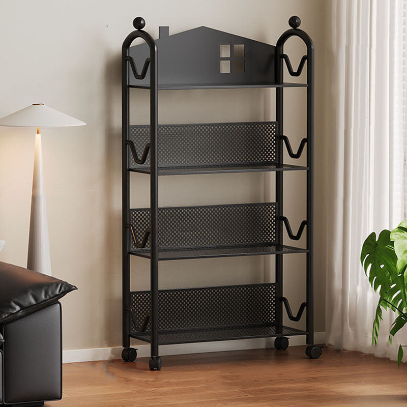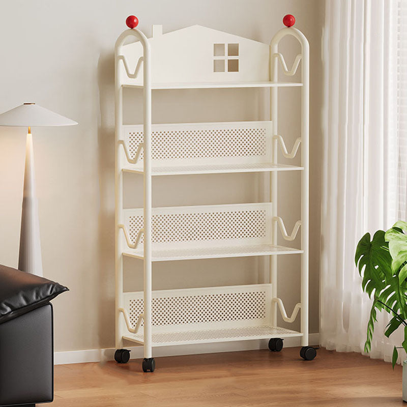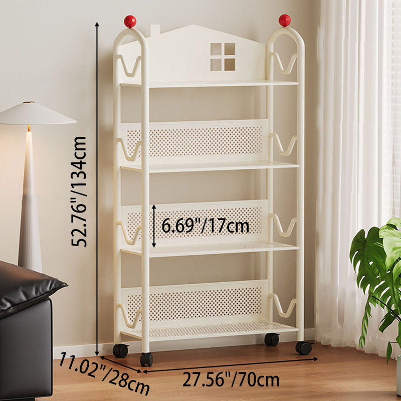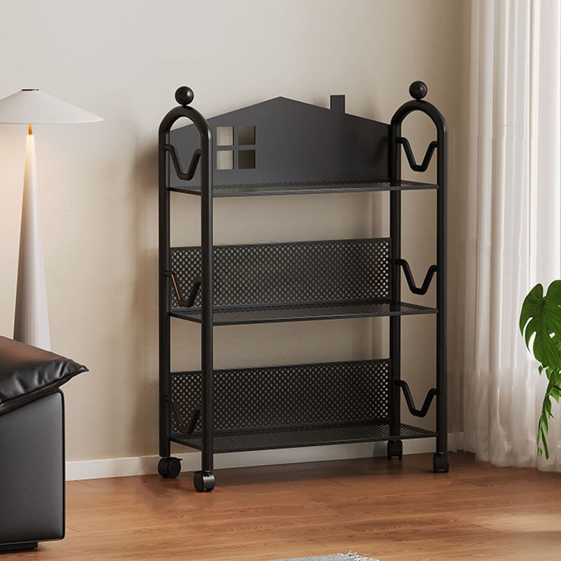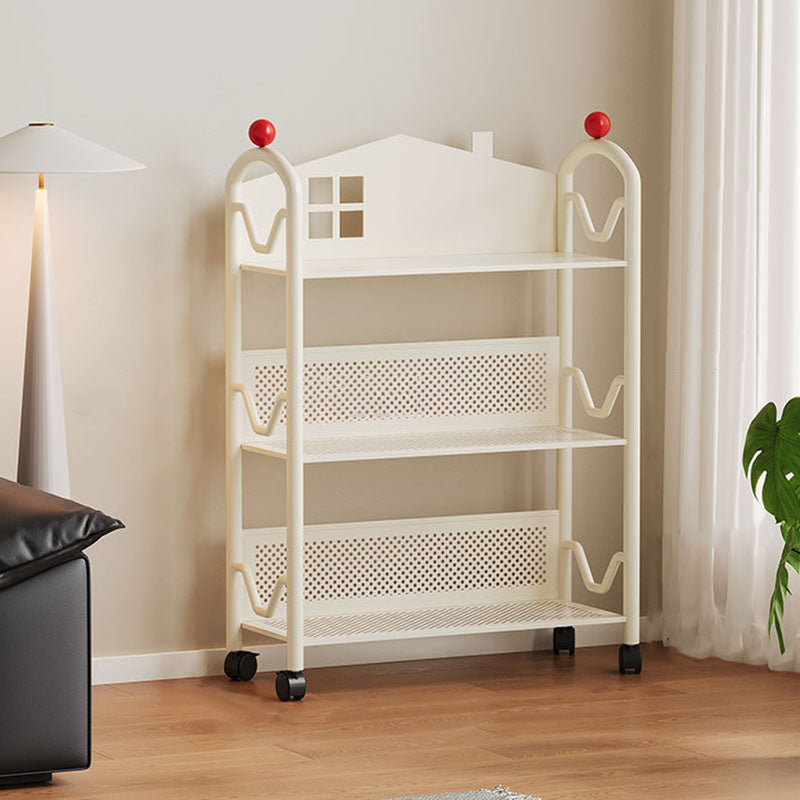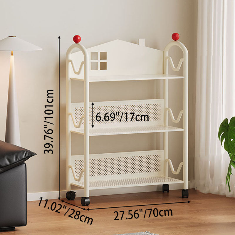 Contemporary Nordic Narrow Castle-Shaped Iron Movable Kids Storage Shelf 3/4-Tier For Living Room