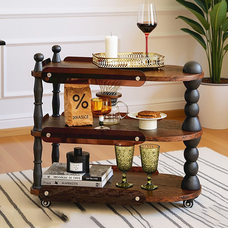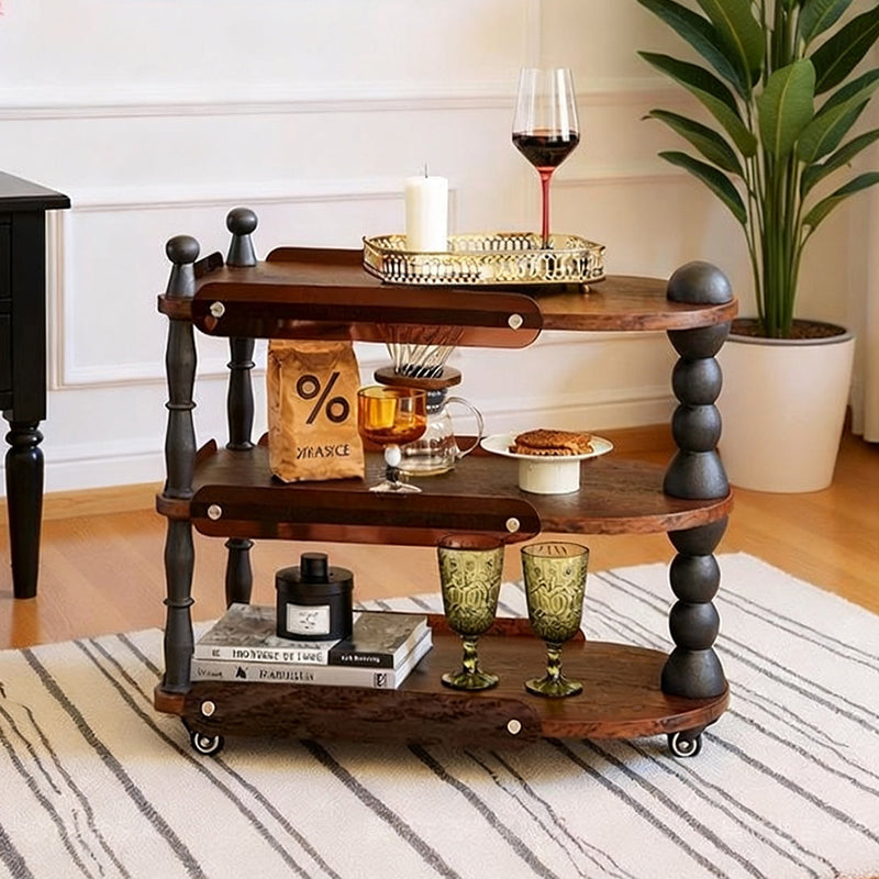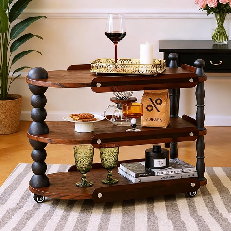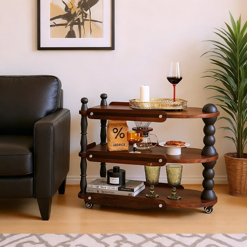 Contemporary Retro Ellipse Rubberwood Movable End Table 3-Tier For Living Room