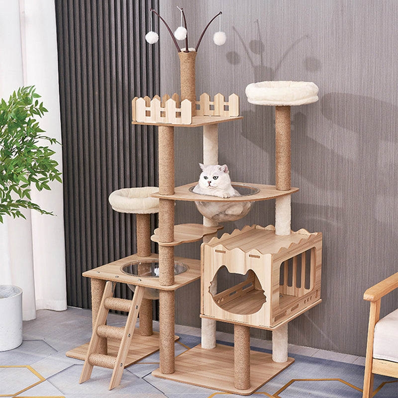 Enrich your pet's daily life while maintaining your home's aesthetic with this contemporary Nordic-style cat tree. The structure is built with durable solid wood posts and finished in a calming natural wood tone, ensuring both stability and warmth. Its captivating feature is the transparent acrylic capsule cat pod, which offers your feline a safe, panoramic view and a unique, stylish resting spot that instantly becomes a focal point in any room.