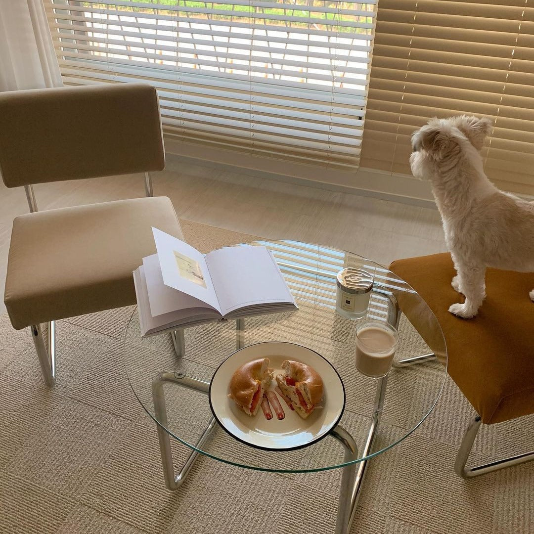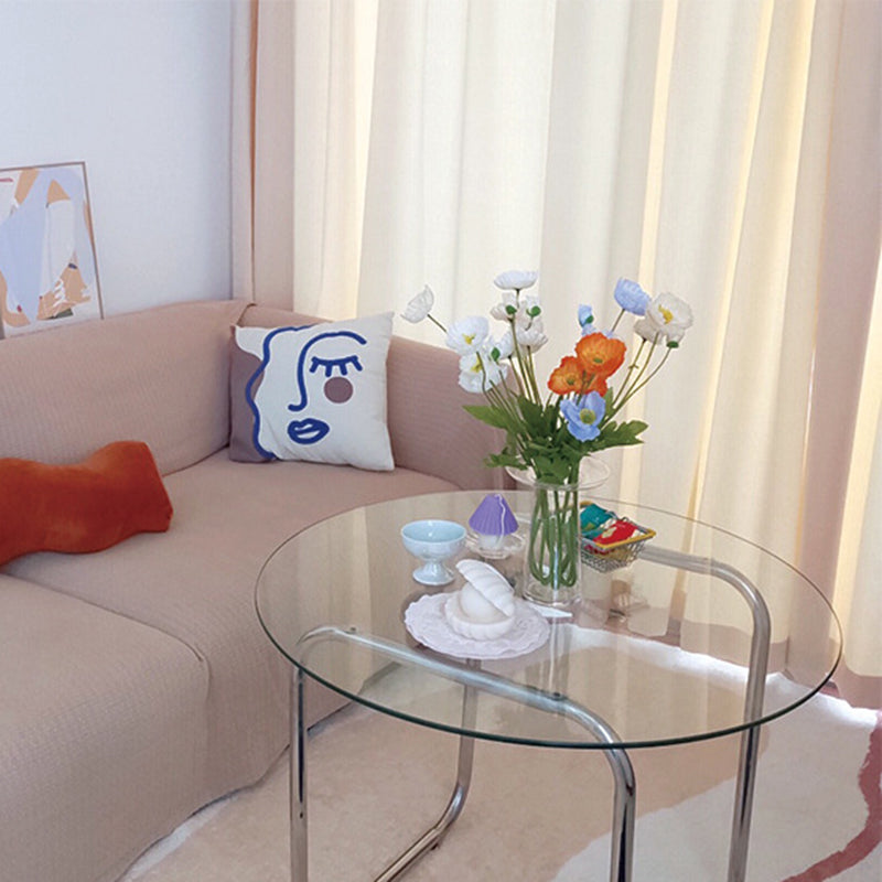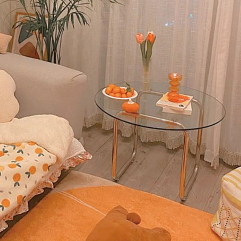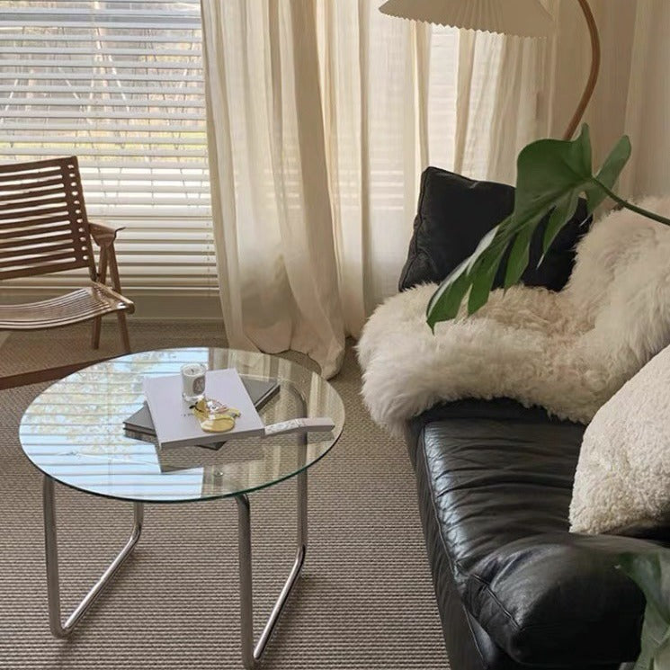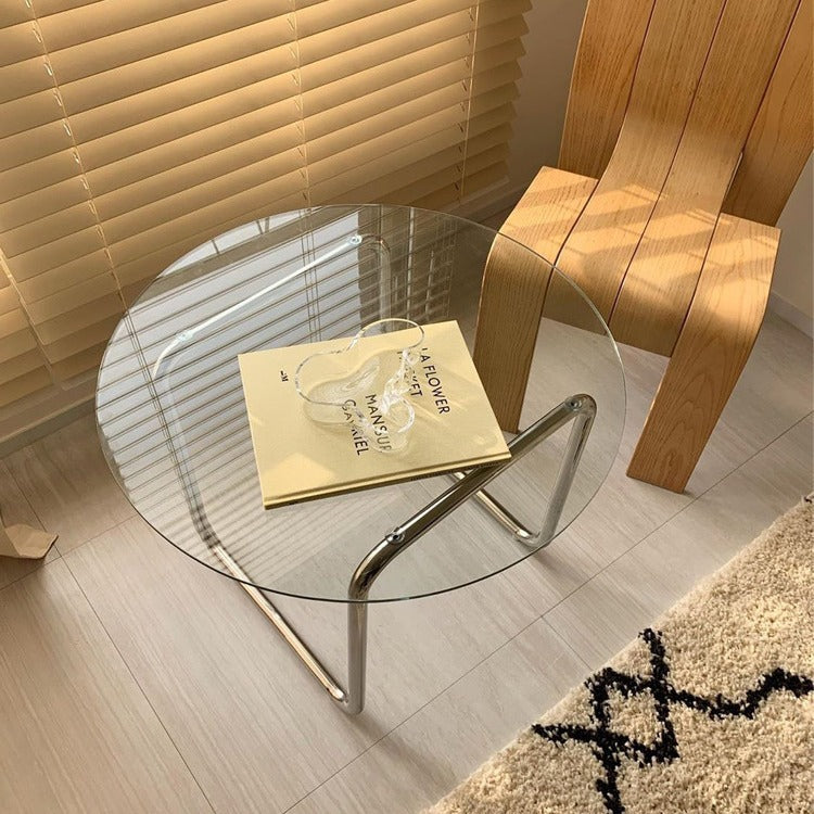 Modern Minimalist Round Glass Stainless Steel Coffee Table 1-Tier For Living Room