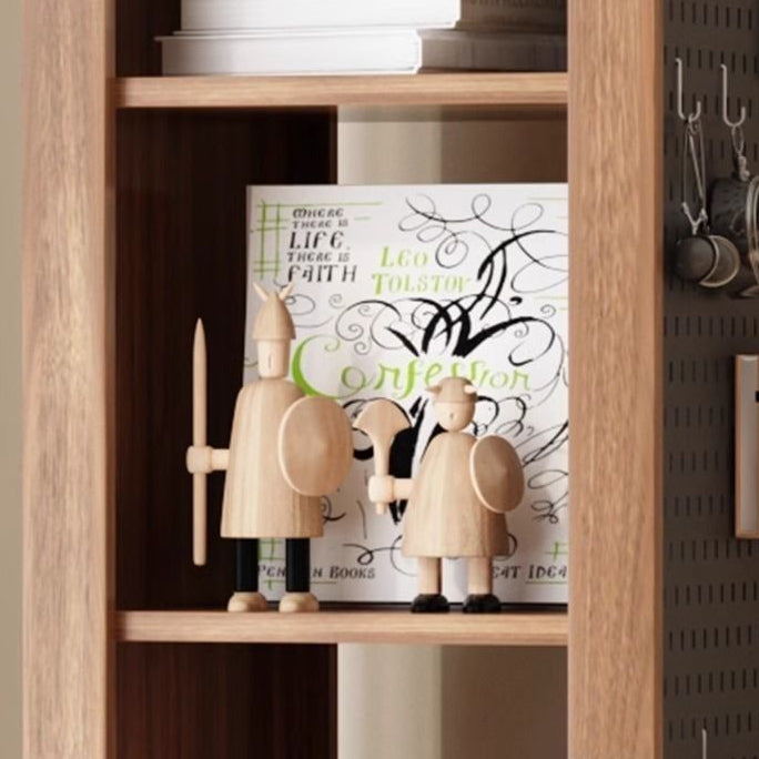 Traditional Vintage Rectangular Pine Wood Solid Wood Carbon Steel Rotatable Multifunctional Bookshelf 5-Tier For Living Room