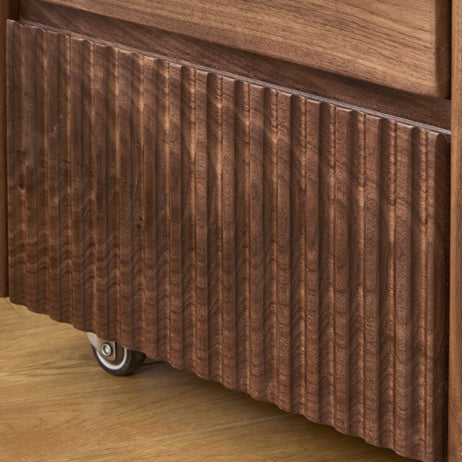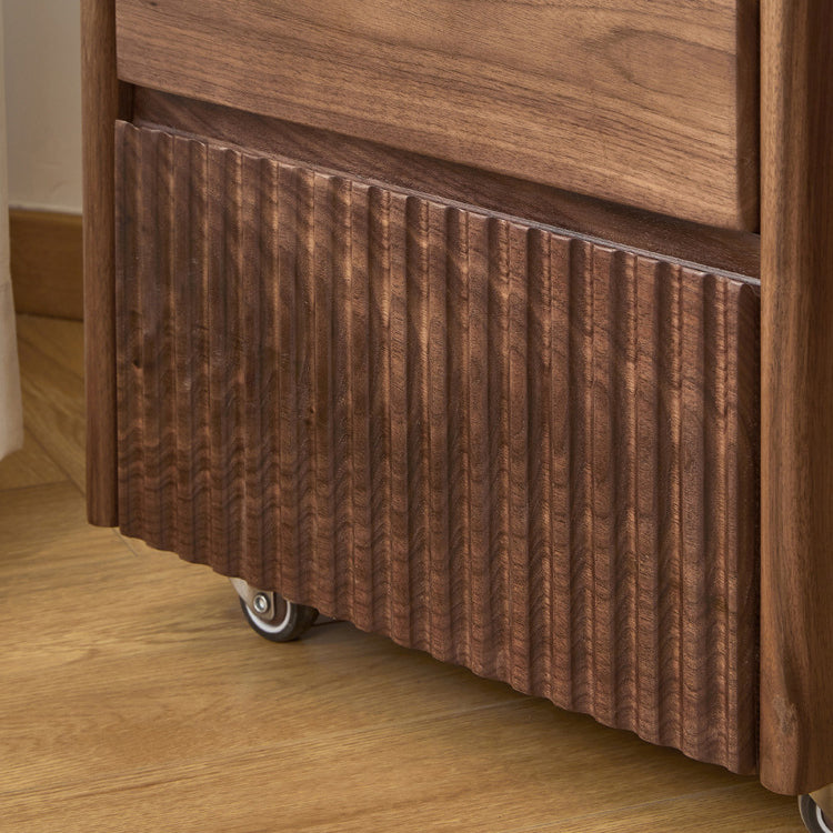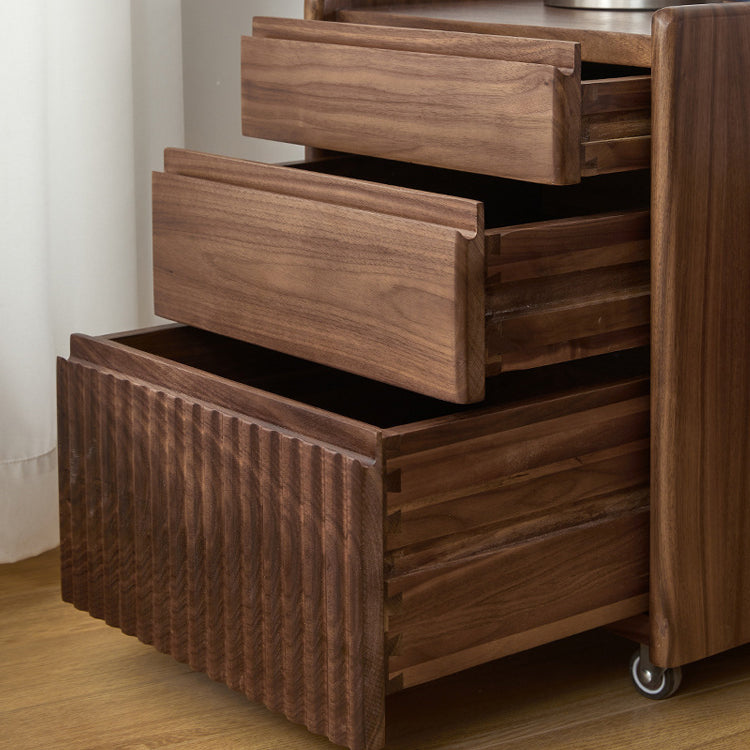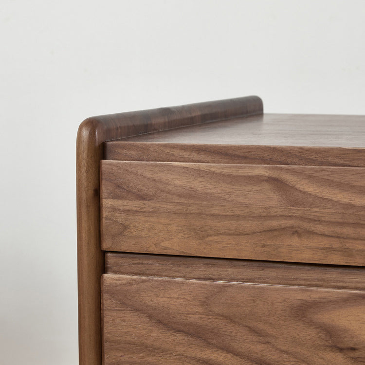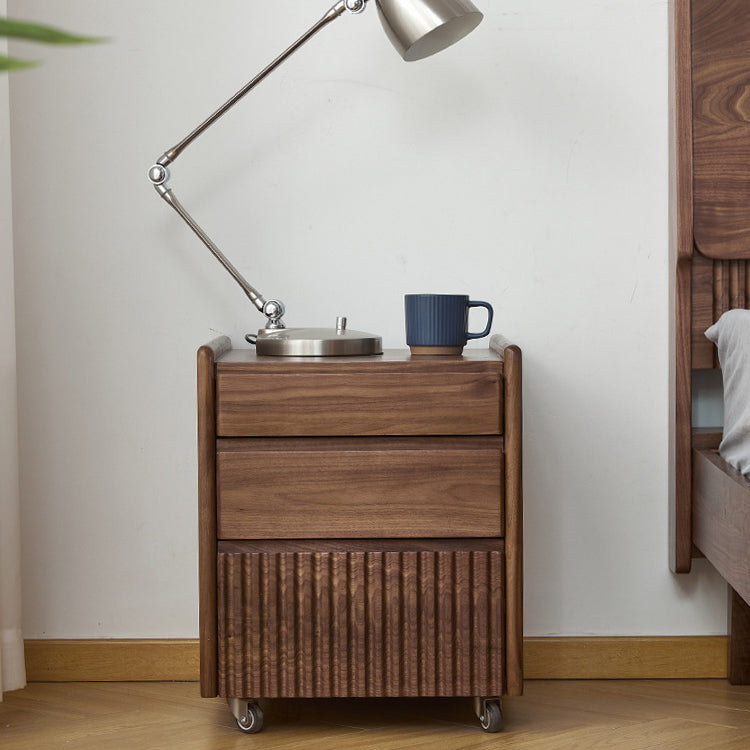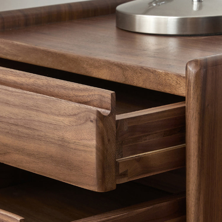 Gefertigt aus reichhaltigem Walnussholz, bietet dieser traditionelle Vintage-Nachttisch ein einzigartiges Klaviertasten-Design, drei geräumige Schubladen und eine sanfte Beweglichkeit. Mit Zapfen- und Schlitzverbindungen und massiven Holzschienen gebaut, ist er eine langlebige und elegante Aufbewahrungslösung für jedes klassische Schlafzimmer