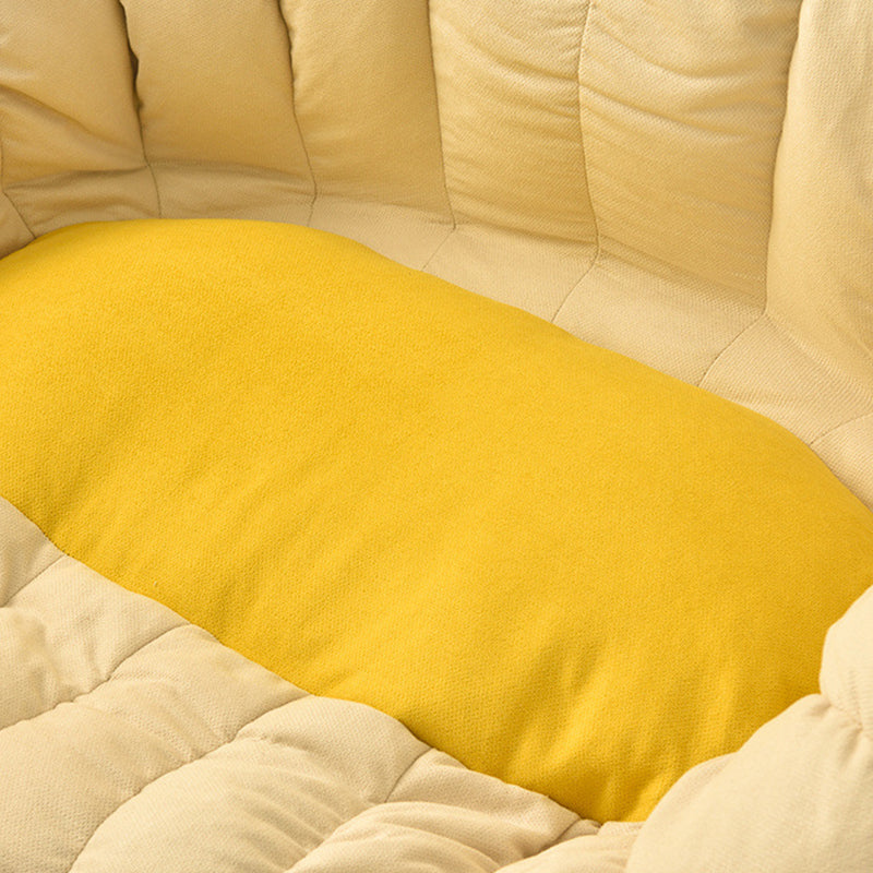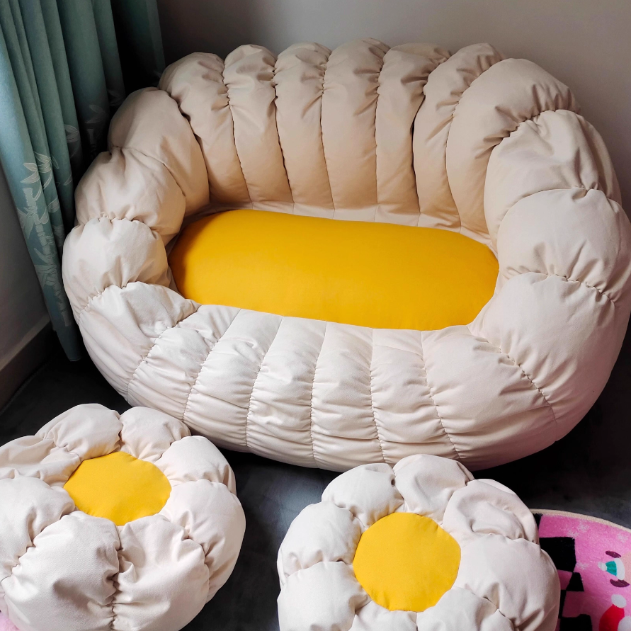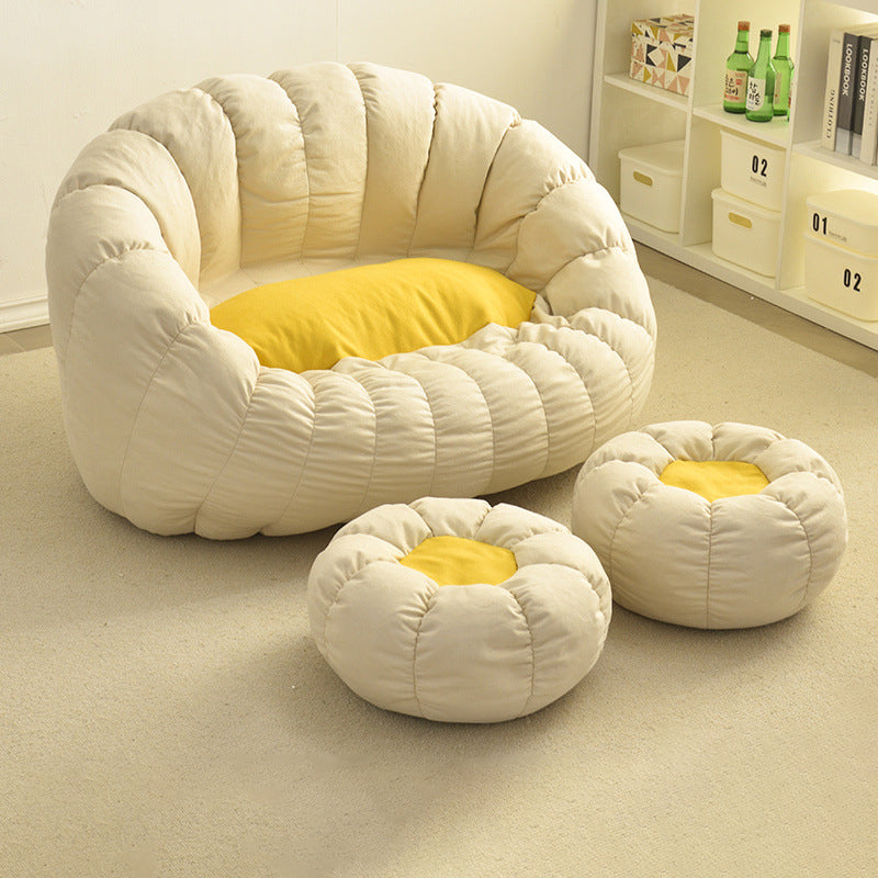 This contemporary bean bag lounge chair in chenille velvet with EPS filling offers cloud-like comfort and breathable softness. Designed with a supportive backrest and semi-round cloud shape, it comes in off-white, yellow, and gray, perfect for relaxing in your living room with ergonomic support and cozy style.