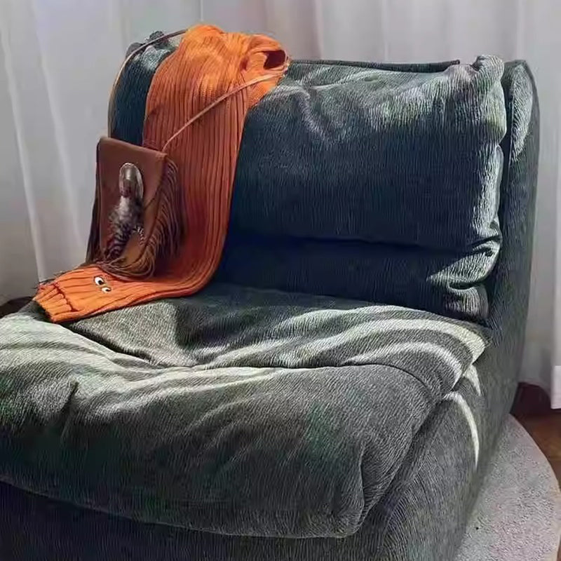 This lazy sofa chair is crafted with velvet and feather filling, designed in a frameless, soft structure for lasting comfort. Offered in mustard yellow, gray, white, black, and brown, it showcases a modern tofu block square shape with a supportive backrest—ideal for stylish living rooms and relaxing spaces.