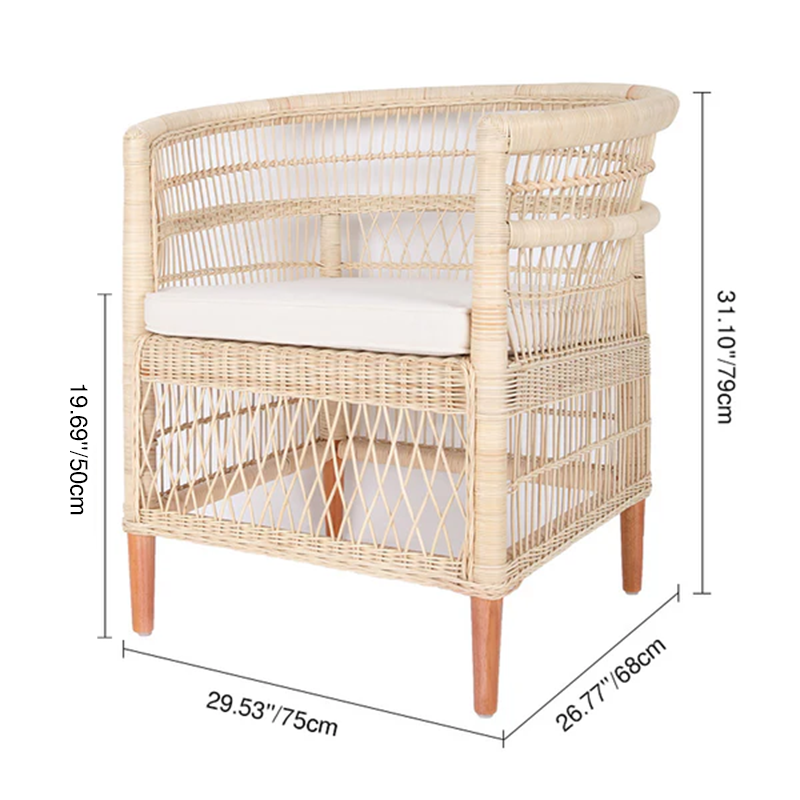 Inspired by Wabi-Sabi aesthetics and Nordic simplicity, this handwoven rattan lounge chair brings effortless calm to your living space. Crafted from premium Indonesian natural rattan and supported by a solid wood frame, it balances organic beauty with lasting durability.