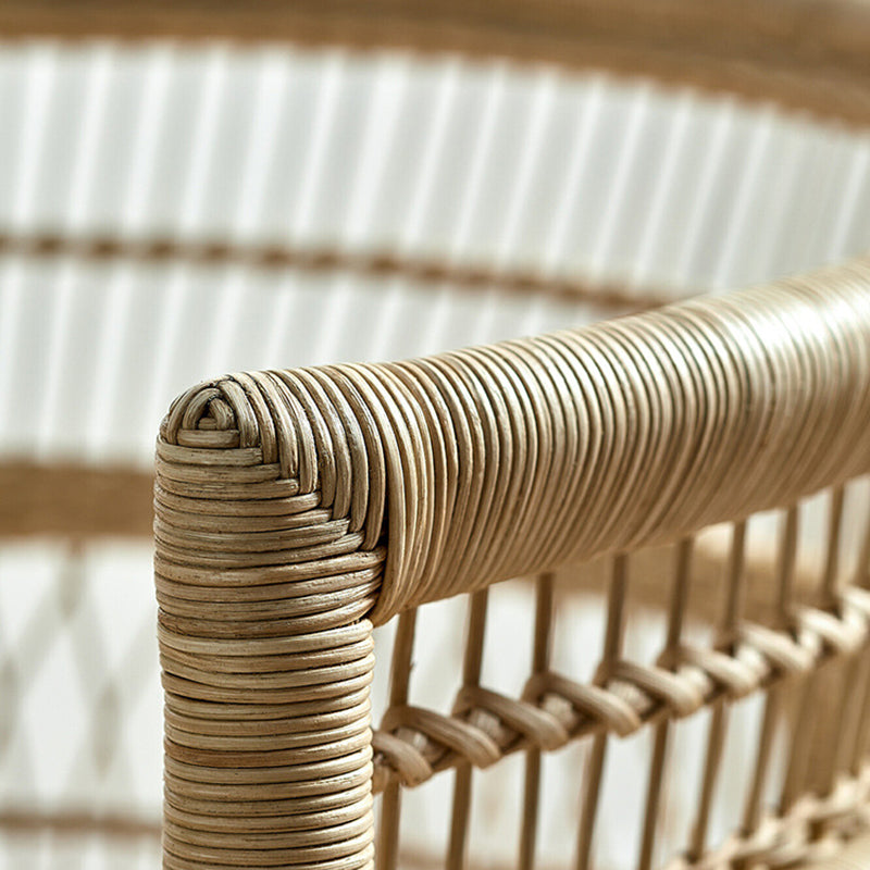 The wide, rounded backrest with arm support offers a relaxed and enveloping seating experience, while the breathable woven structure keeps you cool during warm seasons. Finished with a water-resistant fabric cushion and quick-dry outdoor foam, this chair is perfectly suited for both indoor and outdoor use—from balconies and patios to boutique stays and serene living rooms.