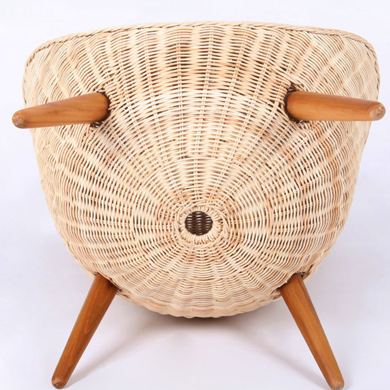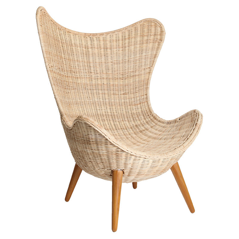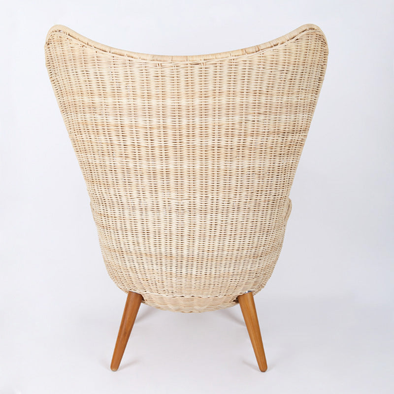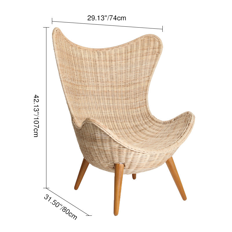 Contemporary Nordic Handwoven Rattan Weaving Solid Wood Legs Accent Chair With High Backrest - Lounge Chair For Indoor & Outdoor Living