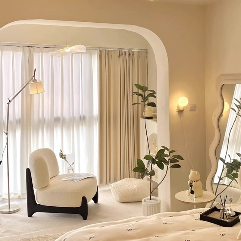 Contemporary Scandinavian Lambswool Solid Wood Rounded Square Accent Chair With Backrest For Bedroom