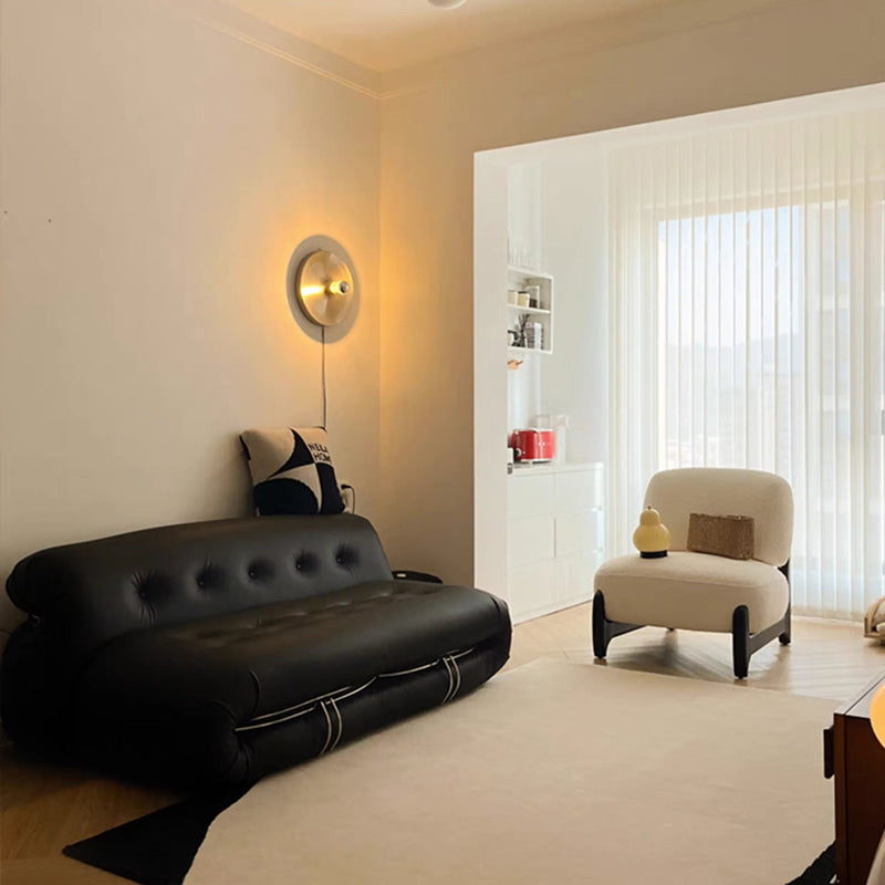 This modern Scandinavian accent chair features soft lambswool and a sturdy solid wood frame in a rounded square design. Available in white and black, it offers ergonomic comfort with high-resilience foam, quick rebound support, and a durable backrest—perfect for cozy bedroom seating.