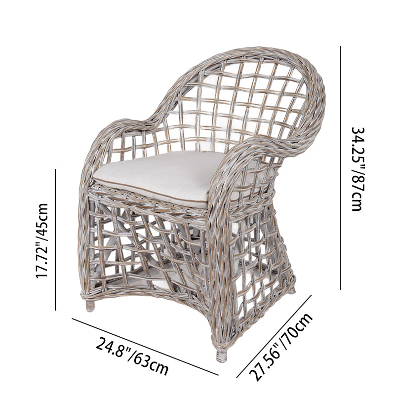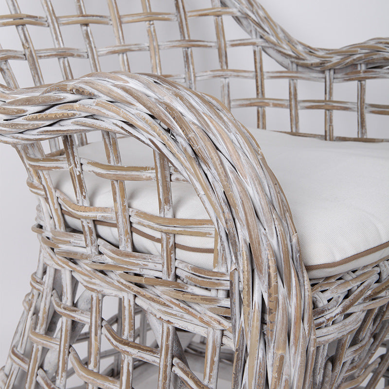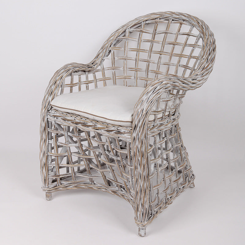This traditional rustic-style rattan accent chair is hand-woven from premium natural Indonesian rattan---lightweight yet sturdy, resistant to brittleness. Its grid-like texture perfectly fits the simple vibe of rural living. The rattan's inherent moisture and heat absorption keep you cool and breathable during long stays in gardens or on patios. Paired with a soft cotton cushion, the plush seating feel blends with the rattan's gentleness; the light gray-white rattan complements the warm tone of traditional rustic style, wrapping every seat in rural relaxation.