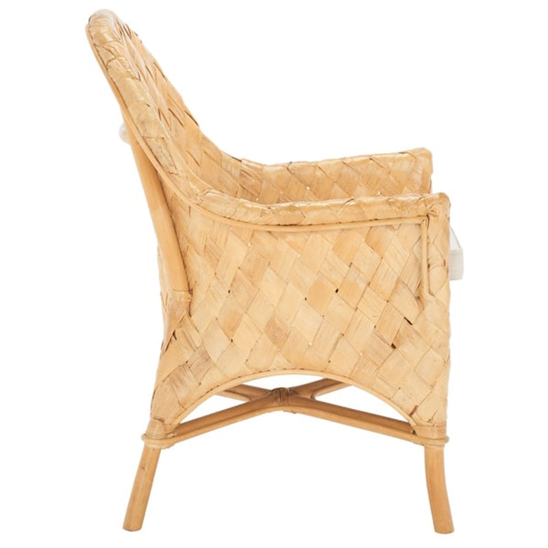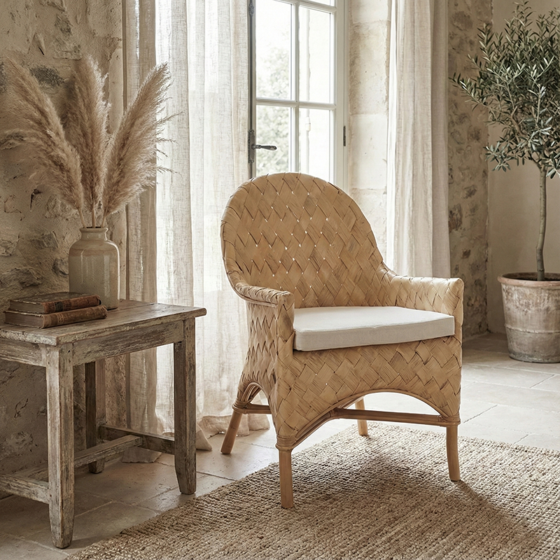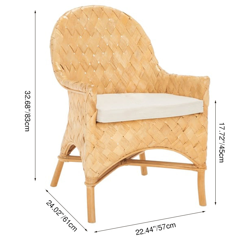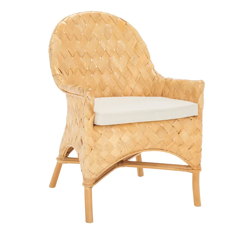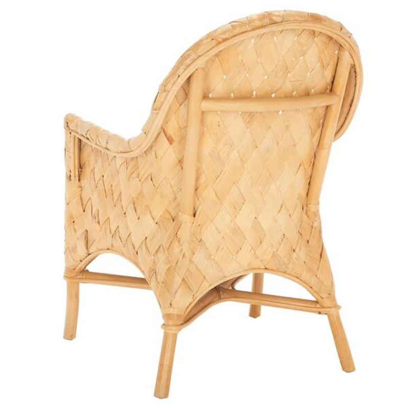 Bring a touch of Nordic elegance to your home or vacation rental with this handwoven rattan lounge chair. Designed with a wide oval backrest and supportive armrests, it offers exceptional comfort for lounging, reading, or enjoying the summer breeze. The soft sponge-filled cushion enhances seating comfort, while the lightweight yet durable Indonesian rattan ensures strength, elasticity, and breathability. Supported by a solid wood frame, this chair is both stable and versatile, perfect for indoor and outdoor living.