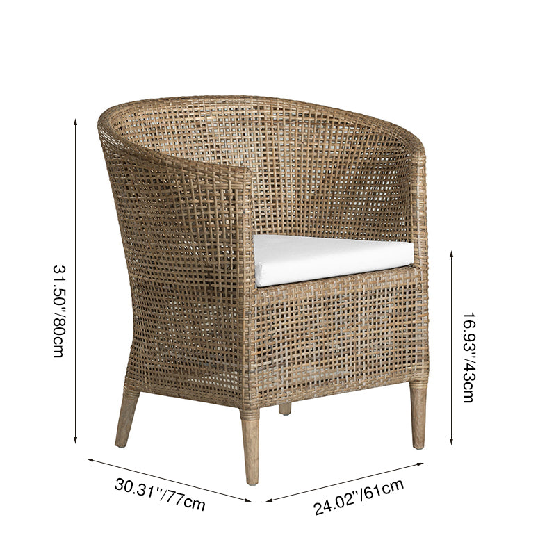 Bring a touch of natural elegance and comfort to your home or vacation rental with this handcrafted rattan lounge chair. Perfect for balconies, patios, or indoor spaces, this chair blends Wabi-Sabi simplicity with functional design. Its wide curved backrest and soft sponge-filled cushion ensure hours of comfortable seating, while the high-strength yet lightweight Indonesian rattan offers durability, flexibility, and breathability. The solid wood frame provides stable support, making it a reliable choice for both indoor and outdoor use.