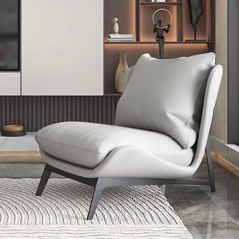 This modern minimalist lounge sofa chair features a clean rectangular silhouette with a supportive backrest and an armless design for relaxed, flexible seating. Crafted with faux leather or soft fabric upholstery, latex-particle cushioning, and a sturdy carbon-steel base, it offers stable support, easy cleaning, and exceptional comfort. Available in orange, dark gray, light gray, beige, black,and white, it brings a stylish and cozy touch to any living room.