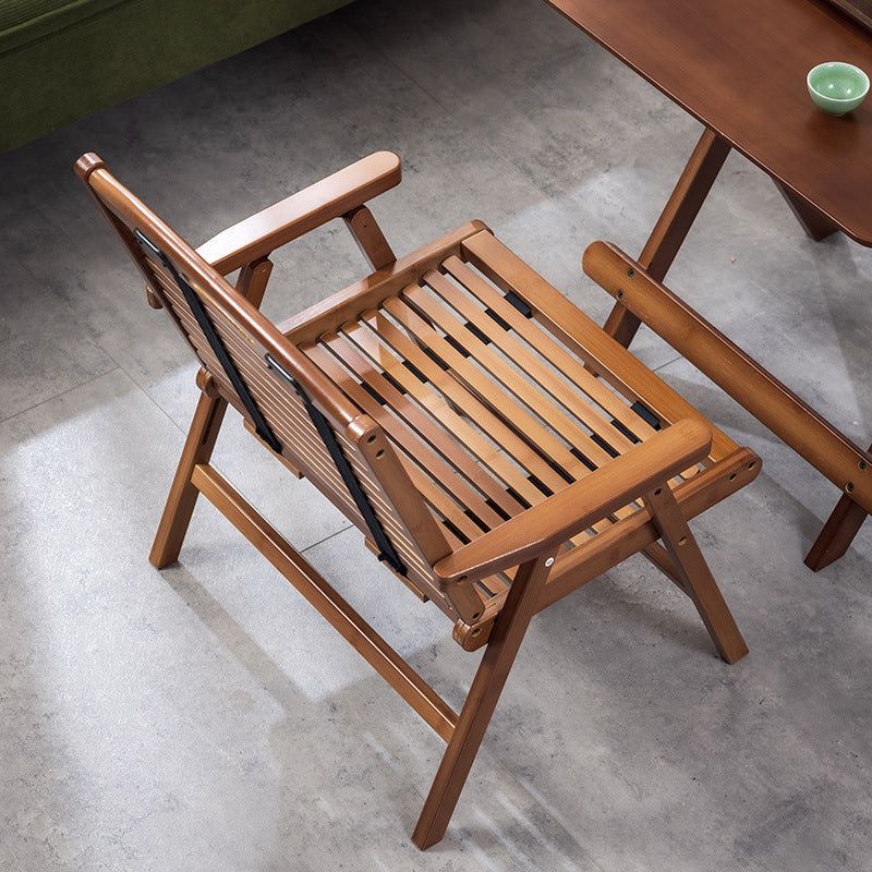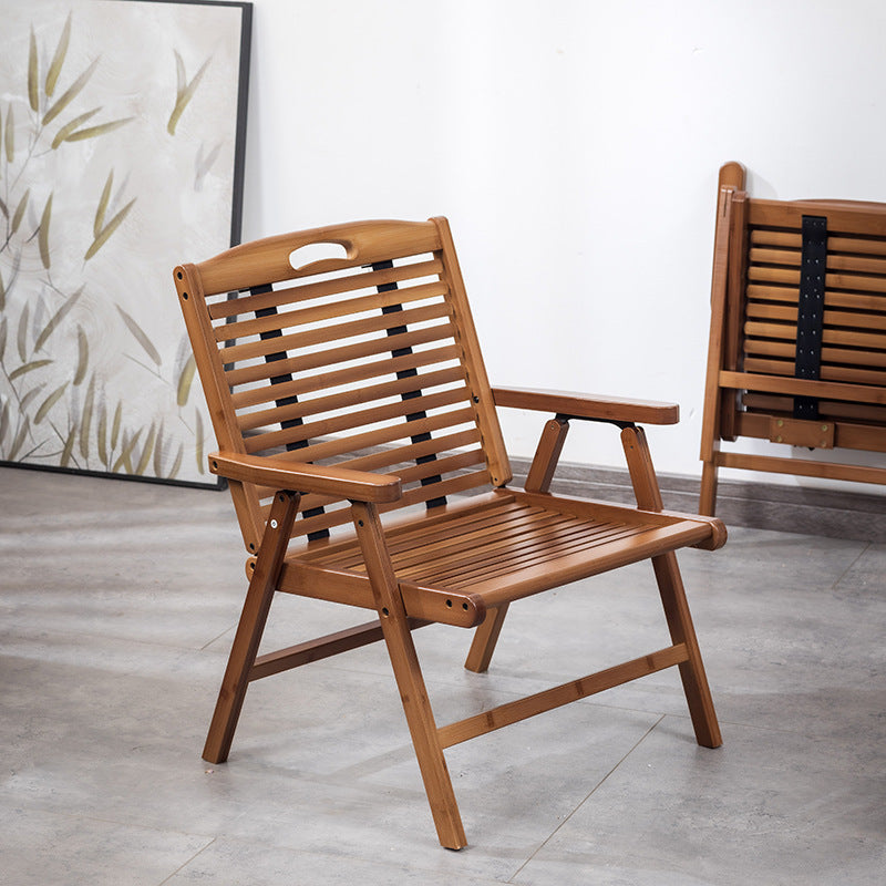 This natural bamboo accent chair features a breathable seat and a foldable design with a supportive backrest and armrests, offering comfort and easy storage. Its warm wood tone and sturdy build make it a versatile addition to living rooms or bedrooms.