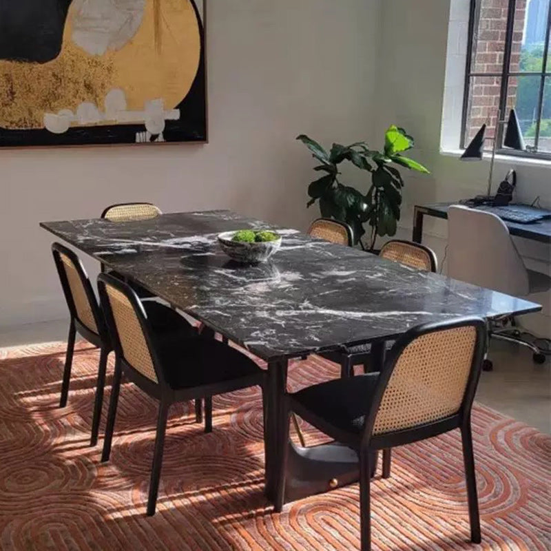 Modern Minimalist Square Rectangular Nappa Leather Lamb Fleece Rubberwood Weaving Dining Chair Backrest Armless For Dining Room & Kitchen