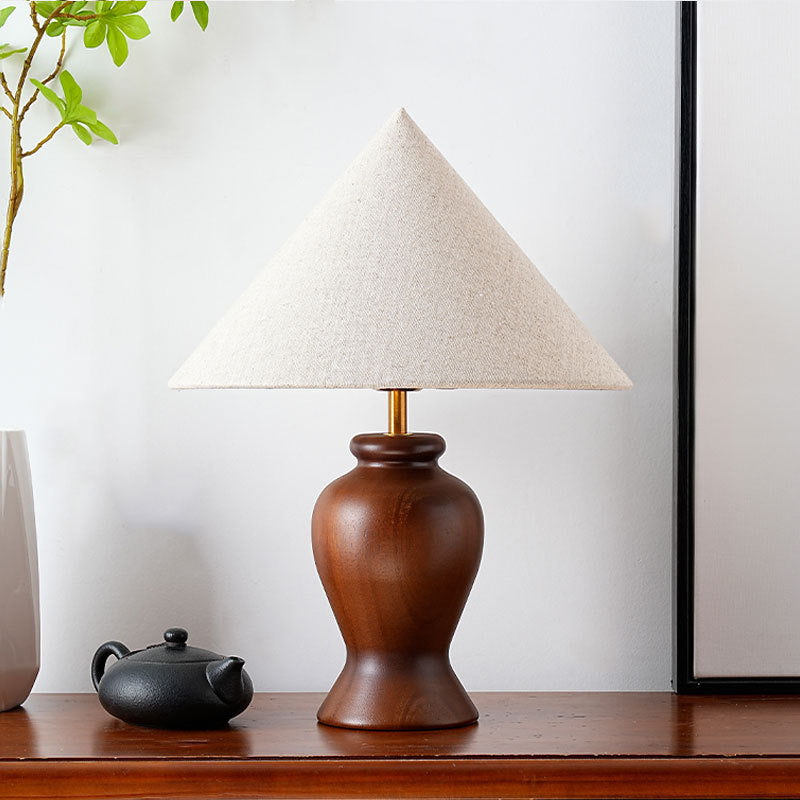 Moderne Art-Déco Tischlampe mit bedrucktem Zylinderkegel aus Holzstoff mit 1 Licht für das Schlafzimmer