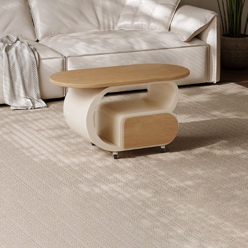 Contemporary Scandinavian Oval Multi-Layer Solid Wood Carbon Steel Movable Side Table 1-Drawer For Living Room