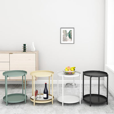Zeitgenössischer skandinavischer runder Tisch mit geschwungenen Kanten aus Kunststoff und Eisen für das Wohnzimmer