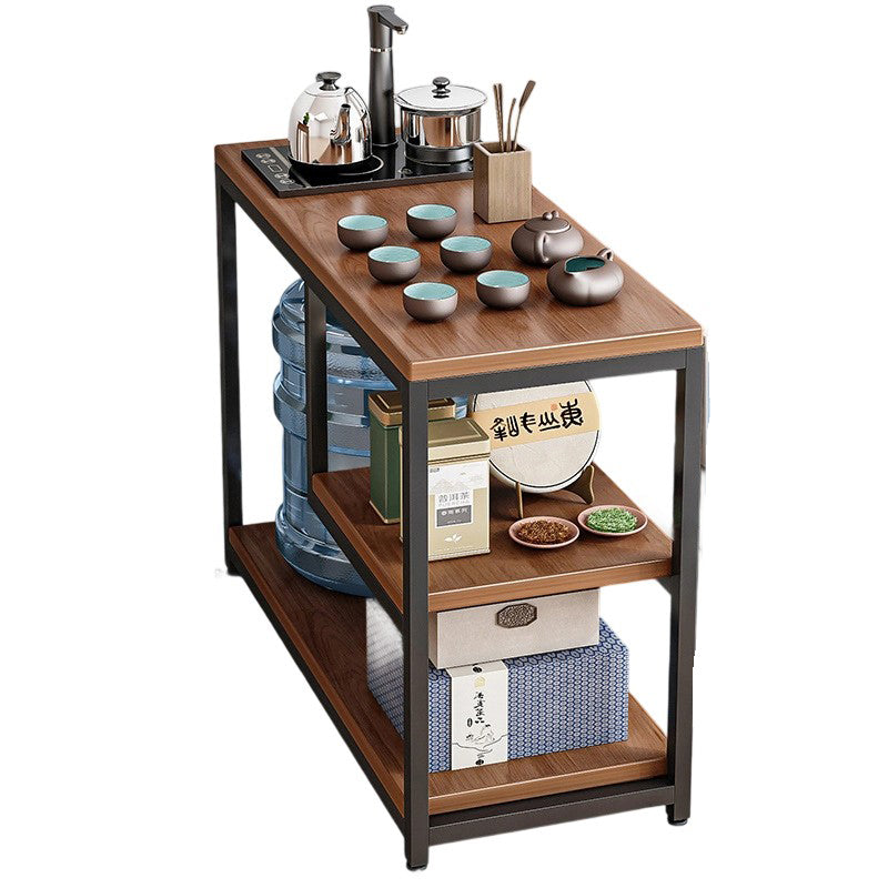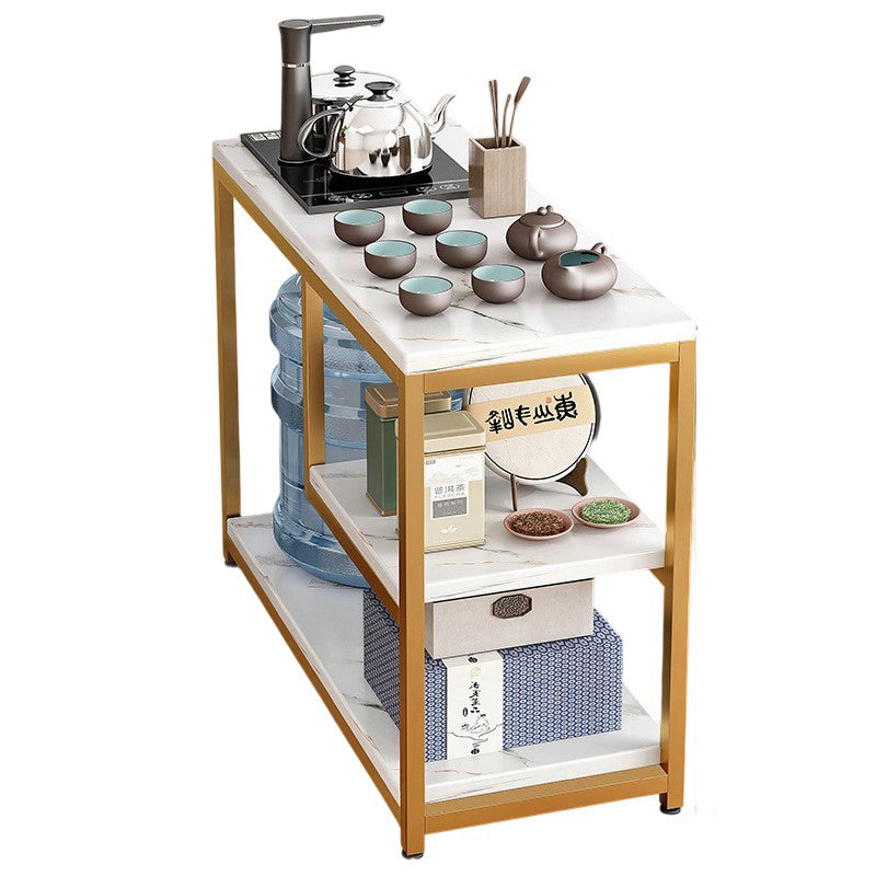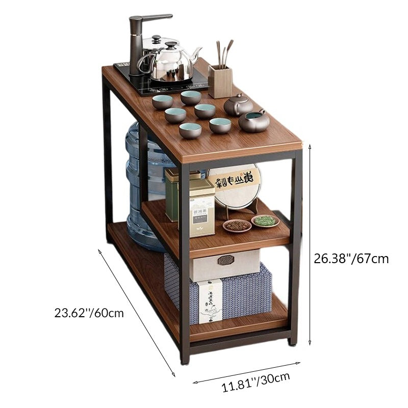 Built from durable engineered wood and sturdy metal, this contemporary Scandinavian side table combines a sleek rectangular-square silhouette with three-tier open storage. Offered in black, gold, walnut, and white, it keeps tea sets, décor, and daily items neatly organized while expanding storage in any modern living room.