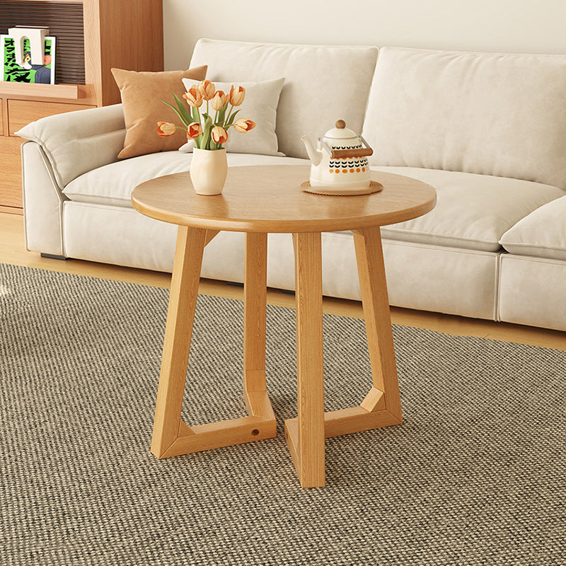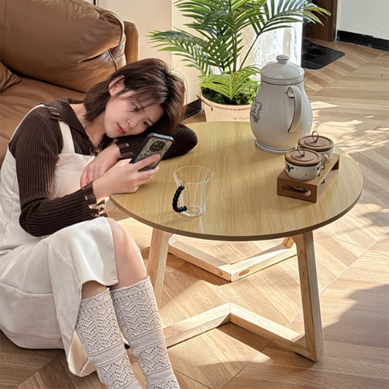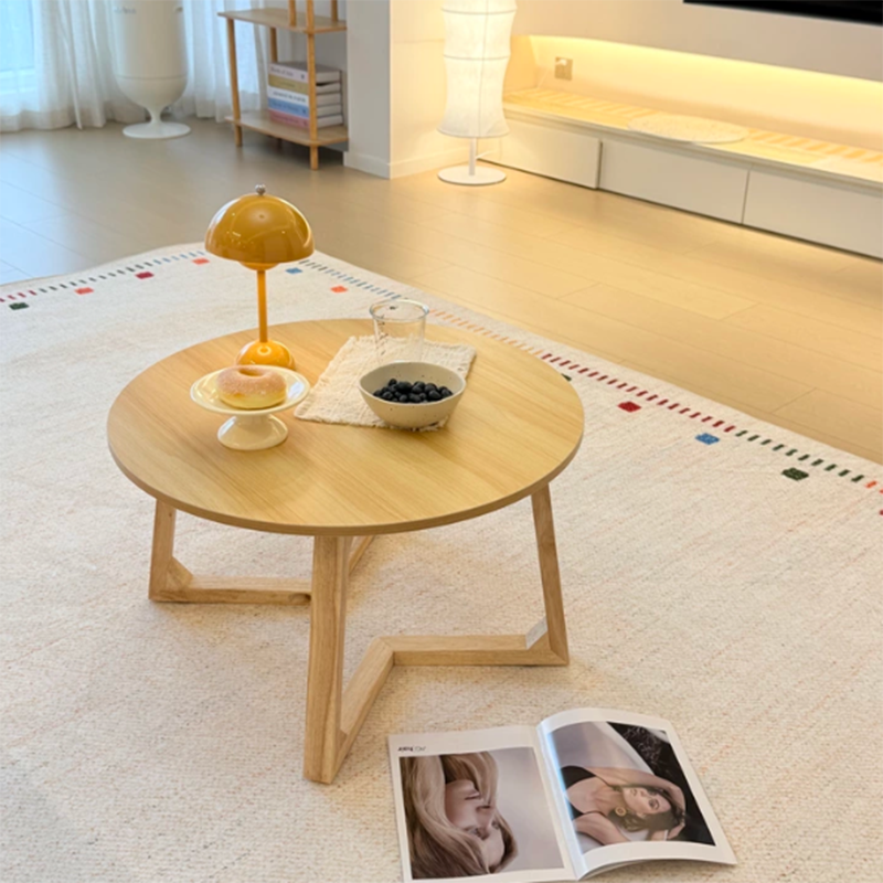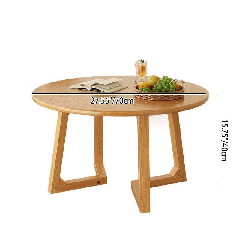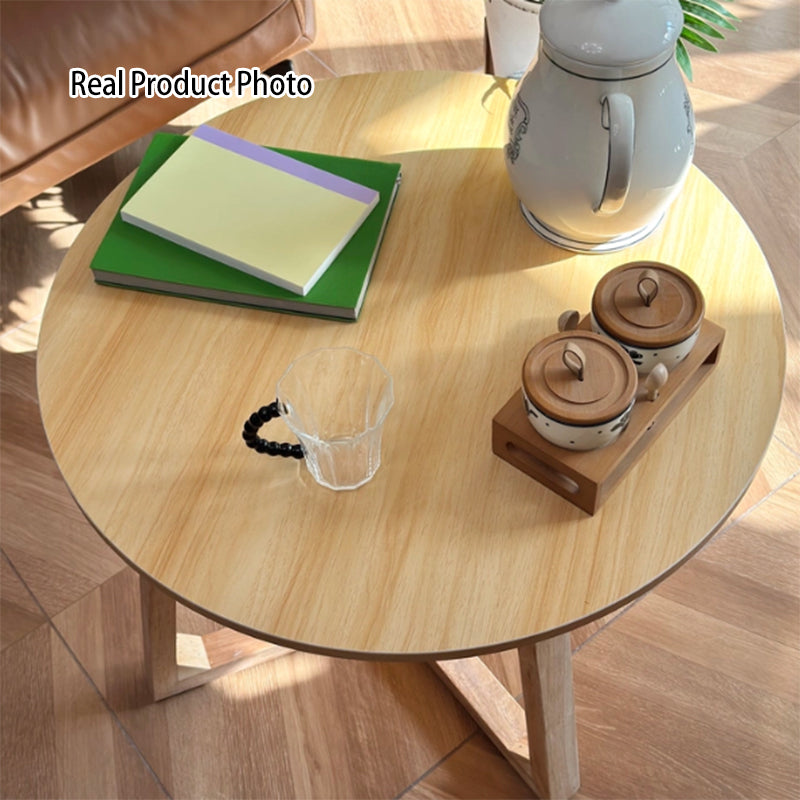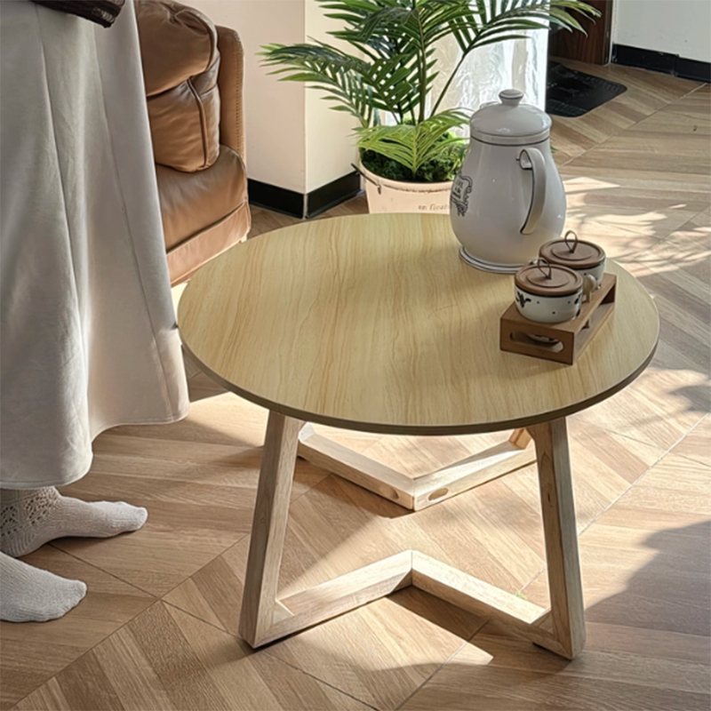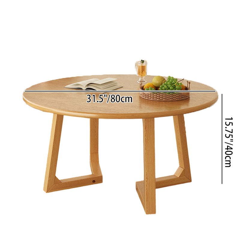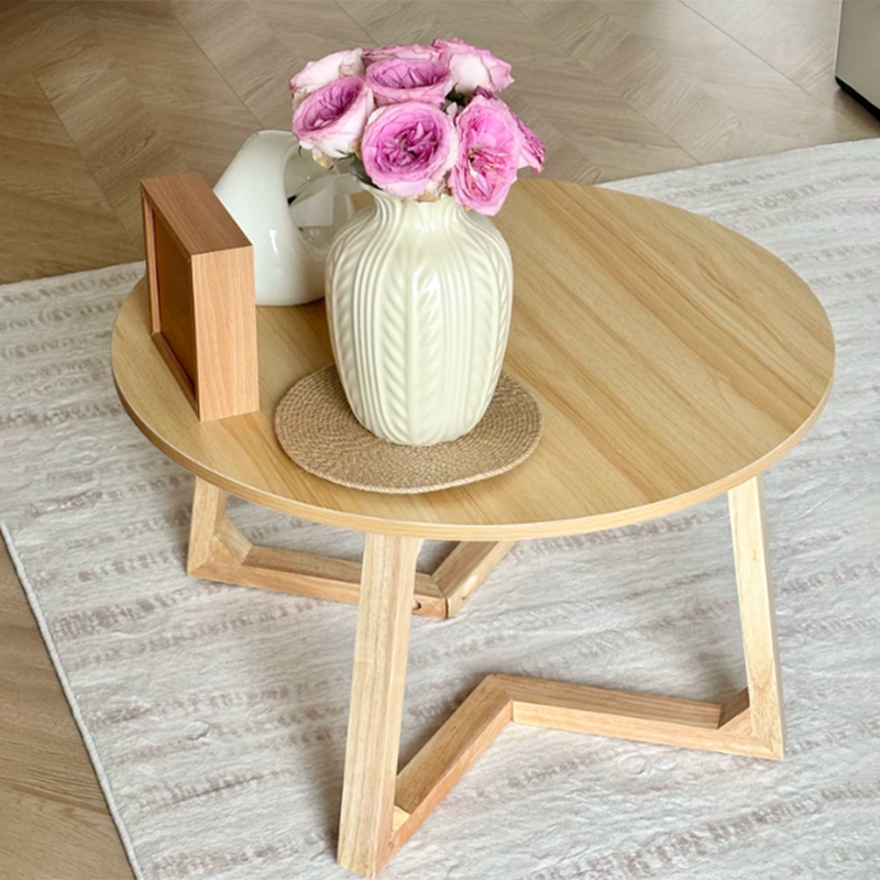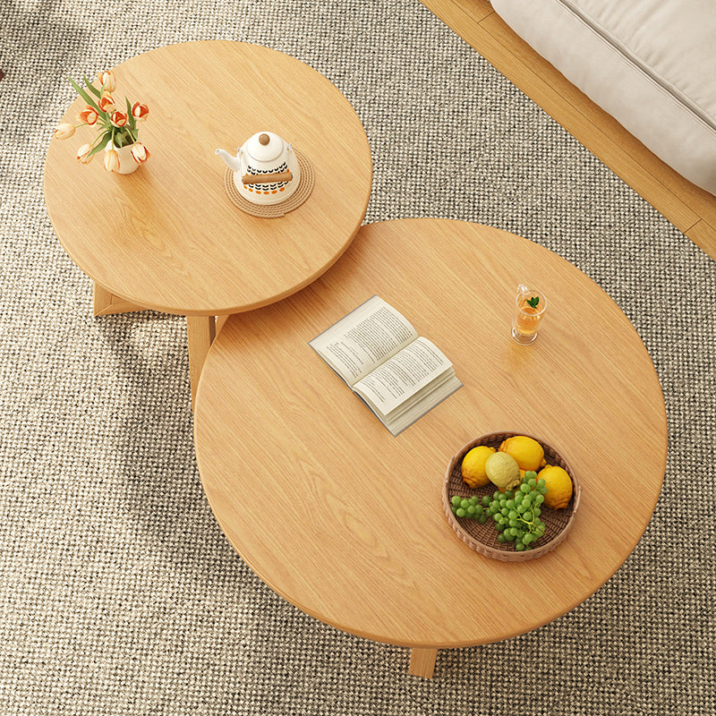Verleihen Sie Ihrem Wohnzimmer mit einem warmen skandinavischen Touch einen Hauch von Eleganz mit diesem wunderschön gestalteten runden Couchtisch. Er verfügt über eine raffinierte Eichenfurnier-Tischplatte, die glatte, geschwungene Kanten aufweist, perfekt kombiniert mit robusten massiven Kieferbeinen für eine Mischung aus natürlicher Eleganz und dauerhafter Haltbarkeit. Die zeitlose natürliche Holzoberfläche bringt organische Wärme, die moderne, minimalistische und japanisch inspirierte Innenräume gleichermaßen ergänzt.