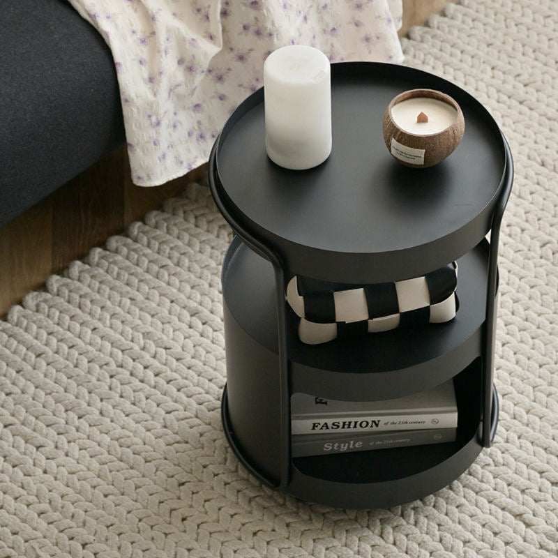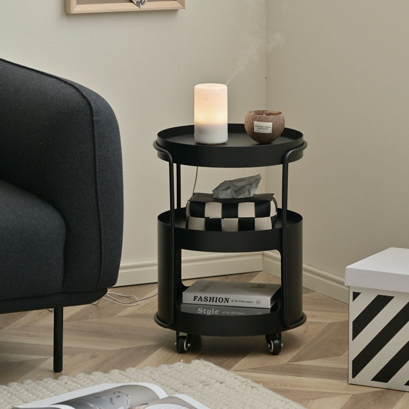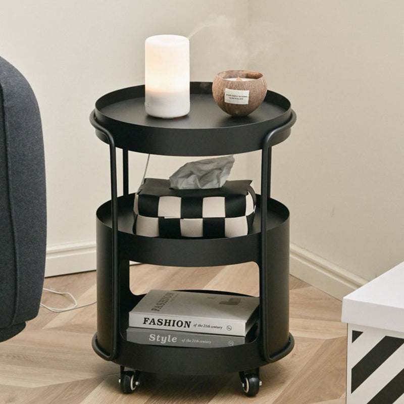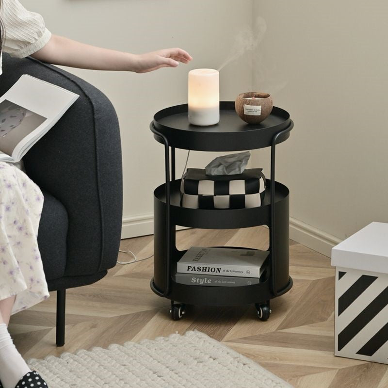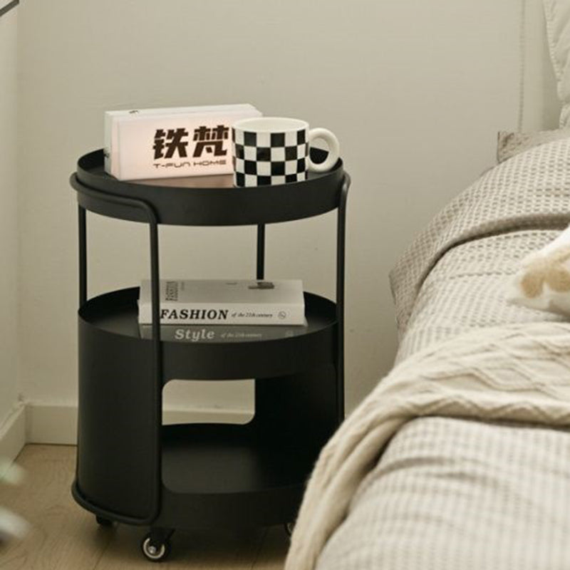 Modern Minimalist Round Carbon Steel Movable Side Table 3-Tier For Living Room